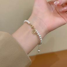 Pulsera de perlas con bendición estilo ins para mujer, estilo retro, nicho, temperamento, pulsera de cuentas, regalo para novias, joyería al por mayor