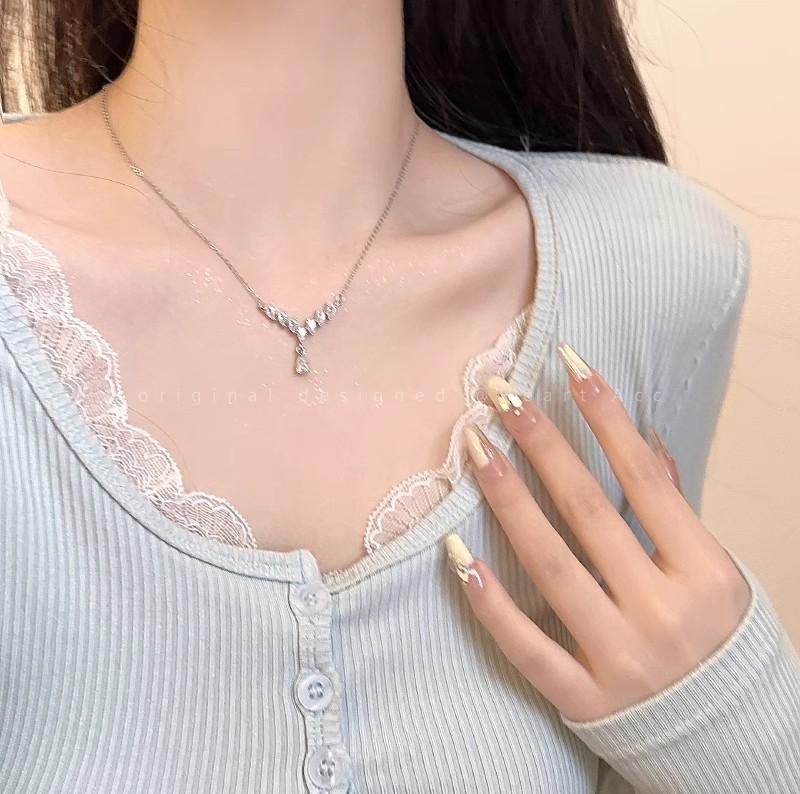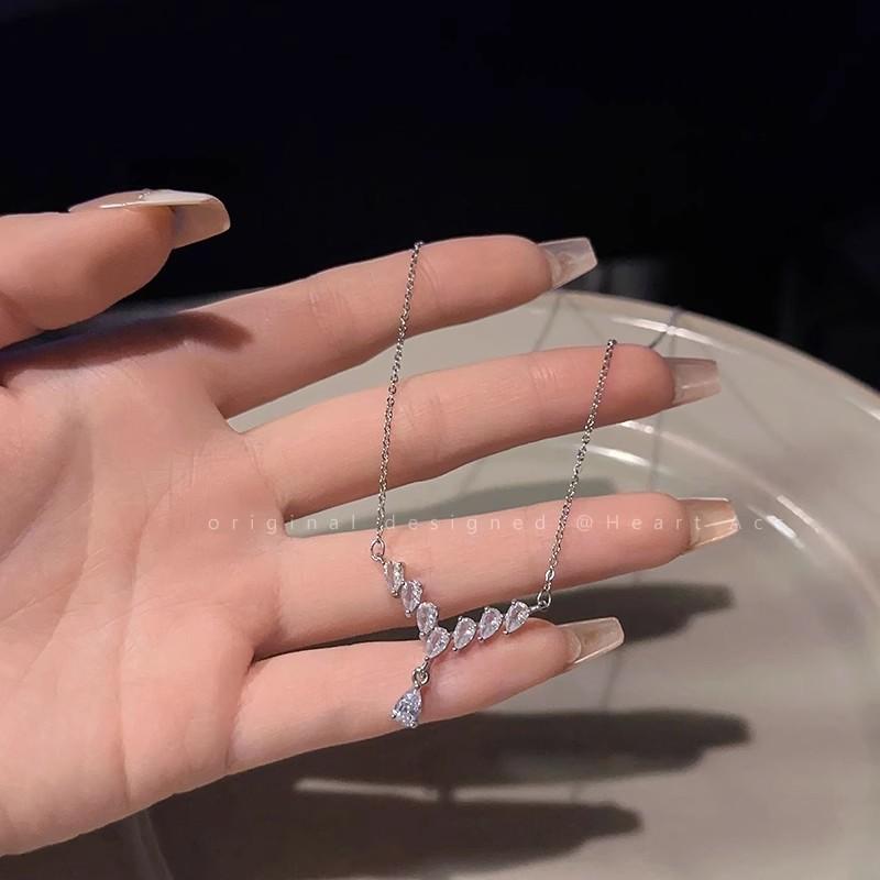 Collar de gota de agua en forma de V con circonita de alta calidad para mujer, diseño de nicho único, cadena de clavícula de acero de titanio, accesorios de personalidad populares