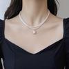 Collar de perlas de diamante circulares de lujo y ligero de moda con nicho, cadena de clavícula de temperamento de alto grado, collar colgante simple de otoño e invierno