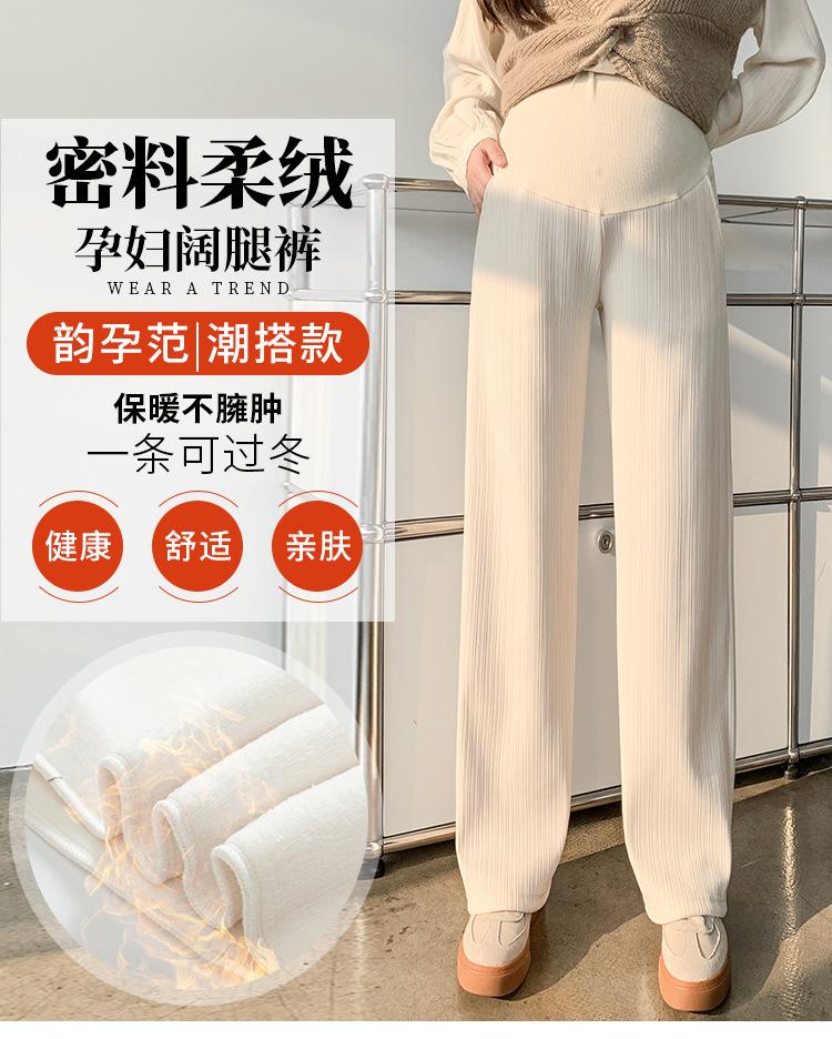 Pantalones de mujer embarazada Primavera y otoño Ropa exterior Tallas grandes Pantalones de pierna ancha Pantalones de mujer embarazada Invierno Pantalones de mujer embarazada Pantalones abdominales con forro polar Primavera