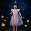 Vestido Redondo de Primavera/Verano 2025 Congelado para Niñas, Vestido Princesa de Algodón de Manga Corta para Niñas Pequeñas