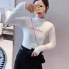 Terciopelo Alemán de Doble Cara Cuello Alto Medio para Mujer 2025 Camiseta Básica Slim de Terciopelo Alemán para Mujer Otoño e Invierno Nuevo Estilo Coreano Manga Larga
