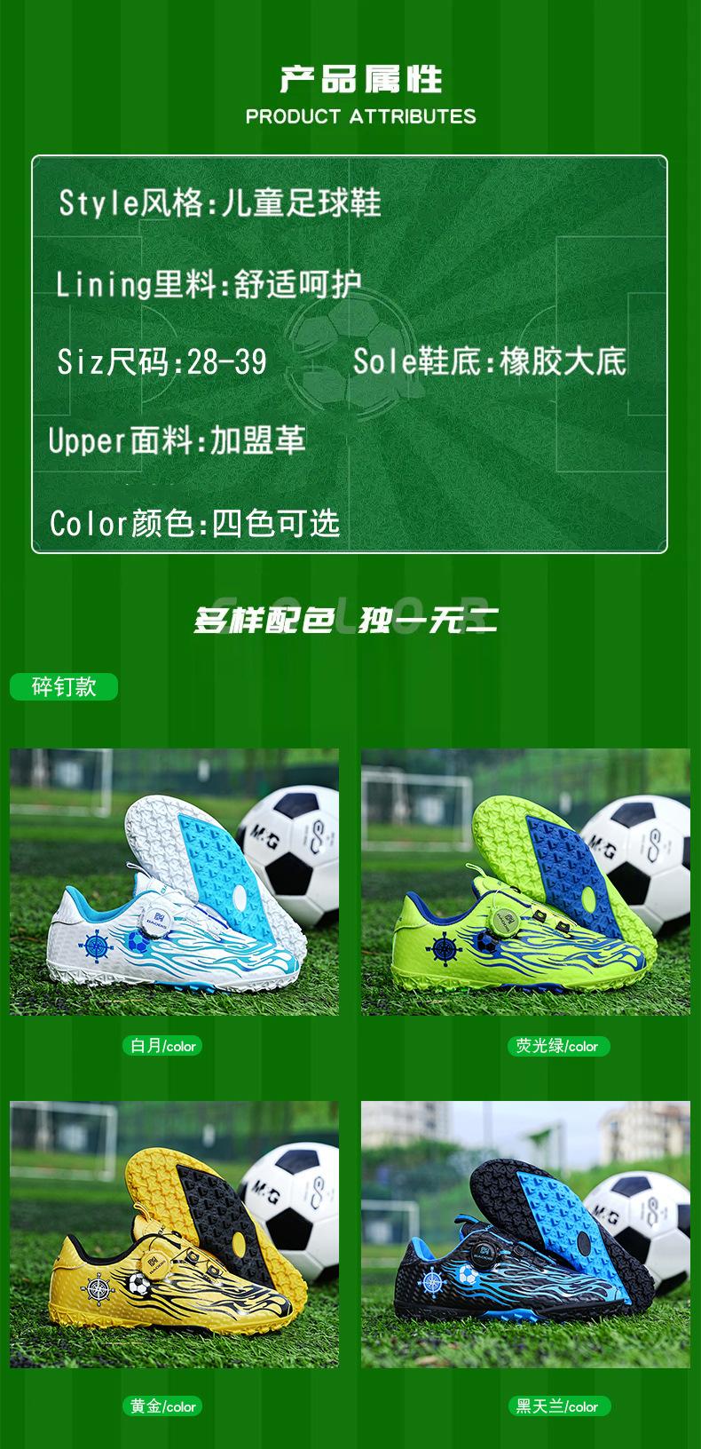 Calzado de fútbol infantil de comercio exterior transfronterizo, calzado deportivo de fútbol para hombres y mujeres, clavos rotos, calzado de entrenamiento para fútbol sala para estudiantes de primaria.