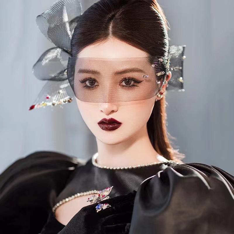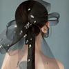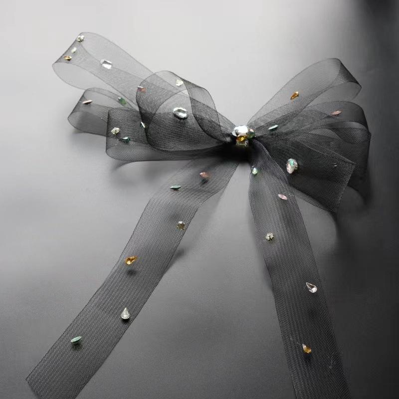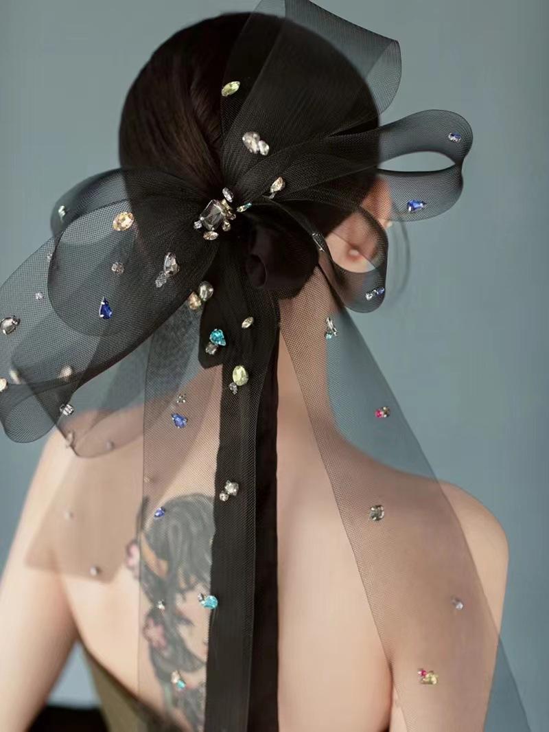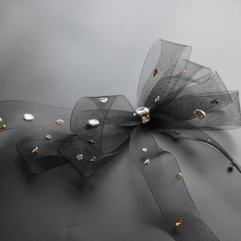 Accesorios para el cabello de novia hechos a mano, malla elástica negra, lazo de diamante, horquilla, tocado, accesorios para vestido de novia.