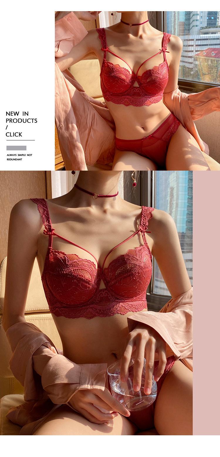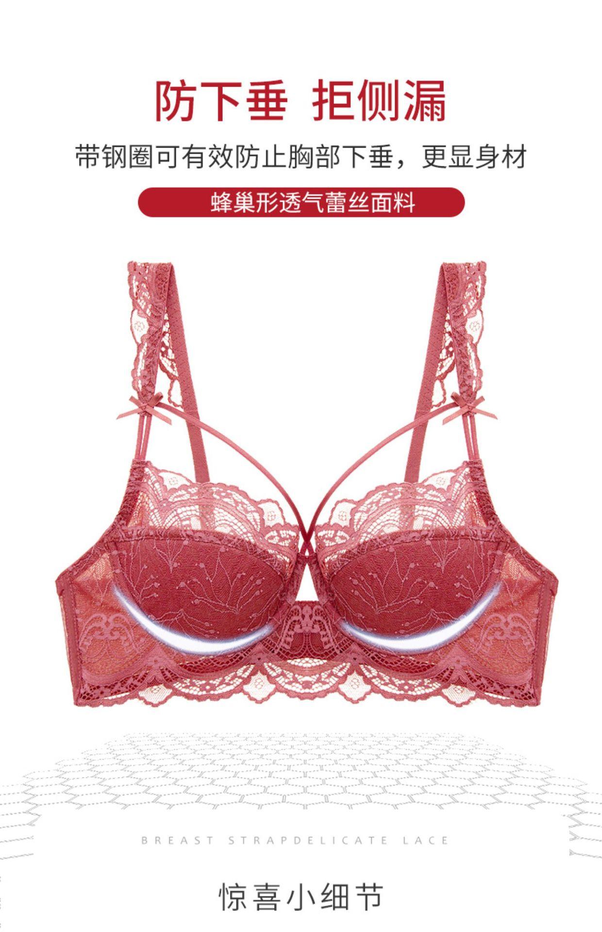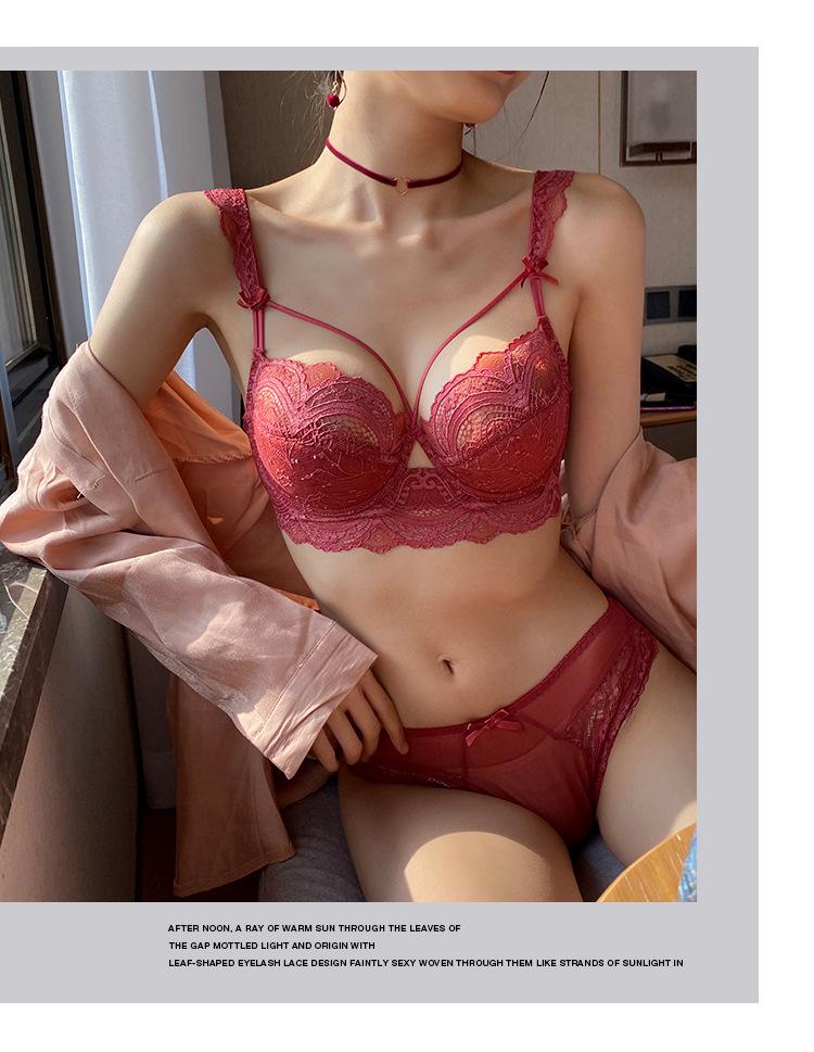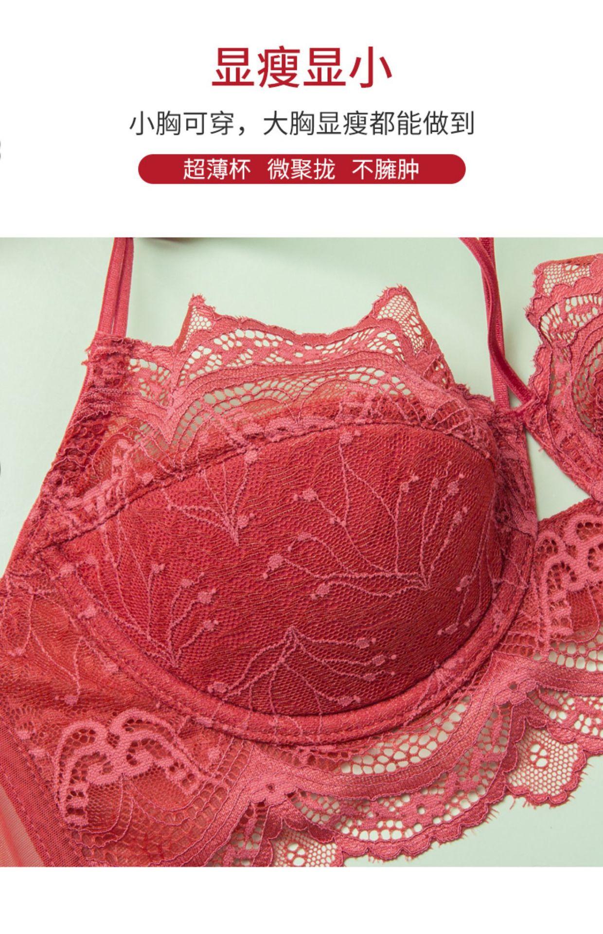Ropa interior de encaje transfronterizo, sujetador rojo sexy, puro deseo, pecho grande, pequeño, fino, transpirable, conjunto de sujetador para niña |