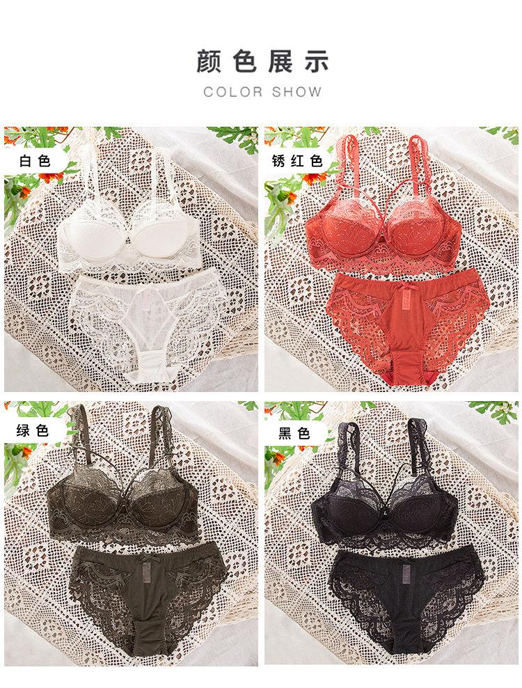 Conjunto de ropa interior ultrafina de verano con sujetador de encaje bordado sexy, deseo puro, pechos grandes que muestran un pequeño sujetador antiflacidez |