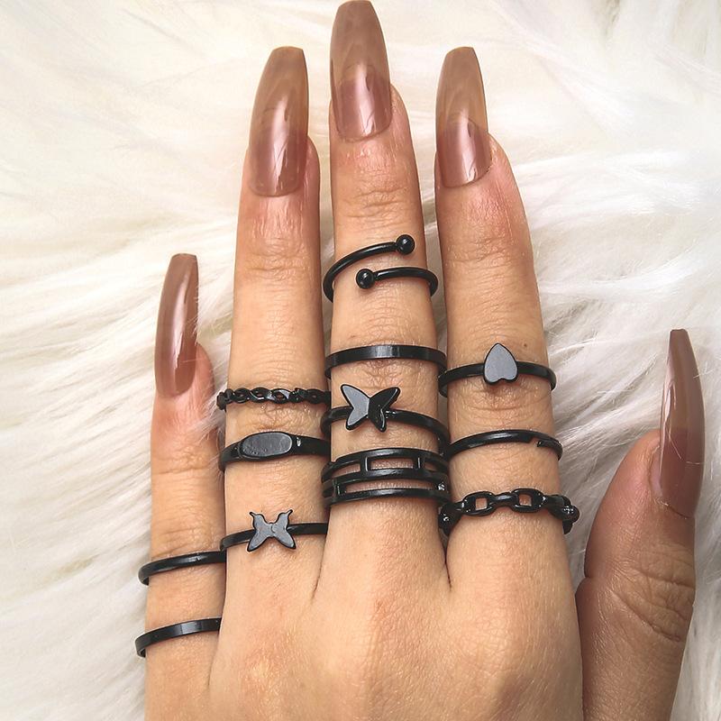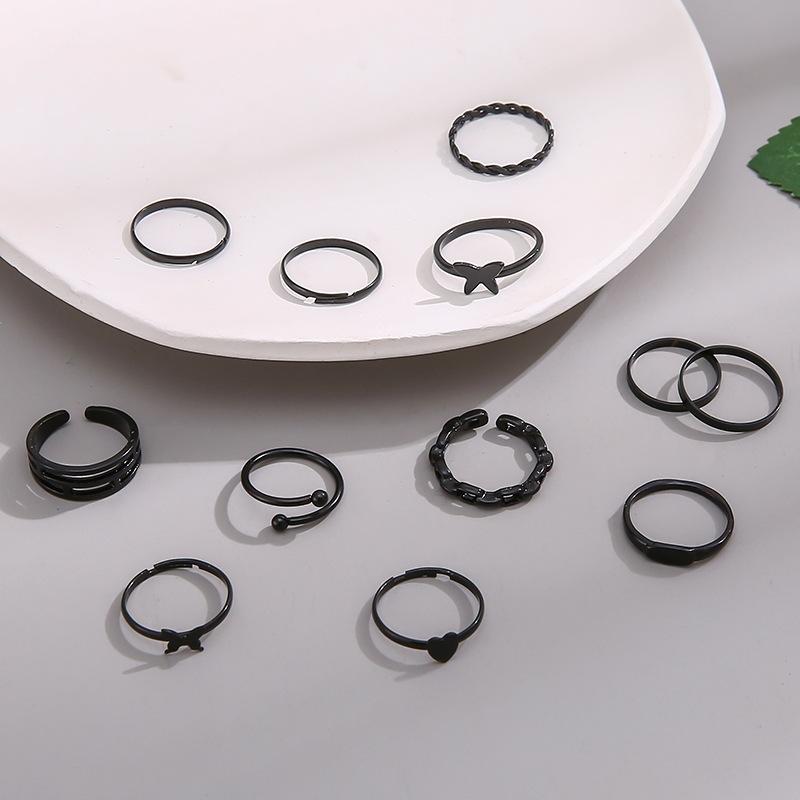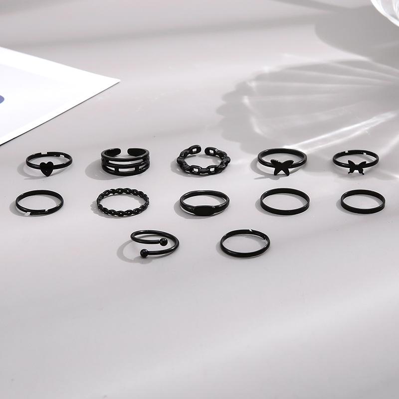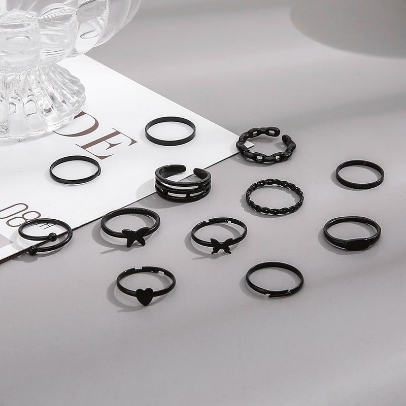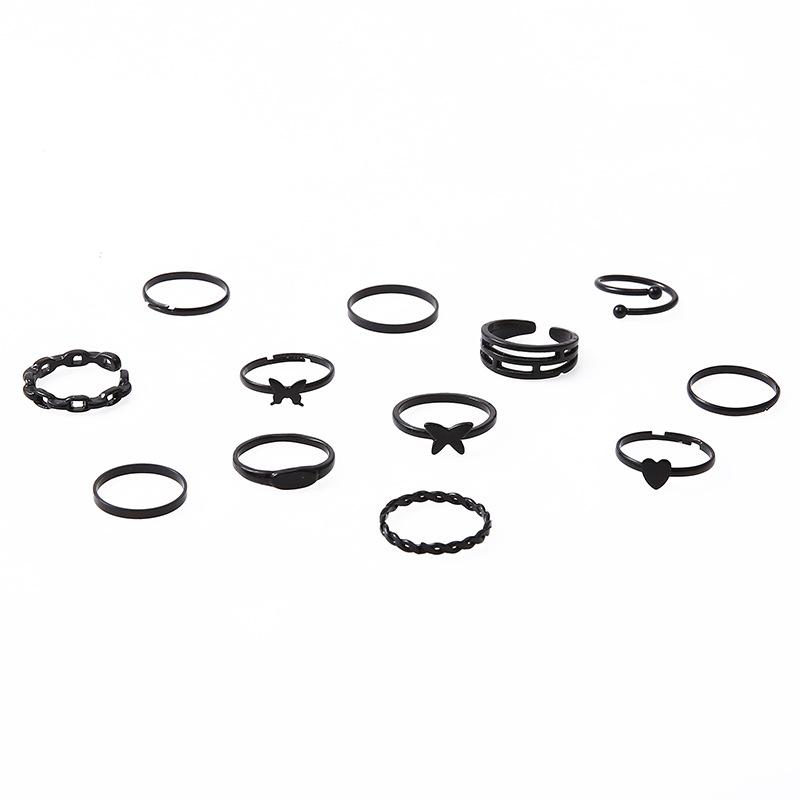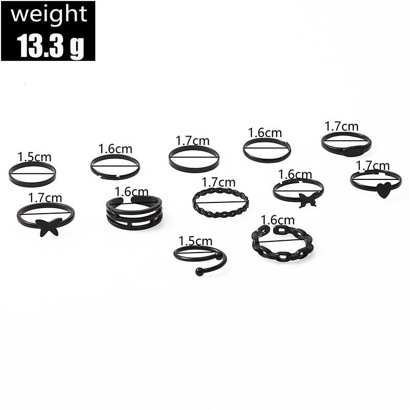 Nuevo conjunto de anillos articulados de mariposa negra transfronterizo europeo y americano 12 piezas personalidad creativa amor anillo trenzado al por mayor