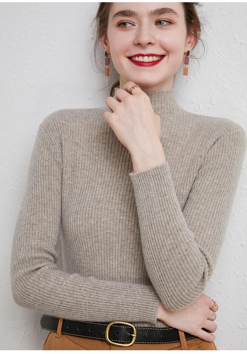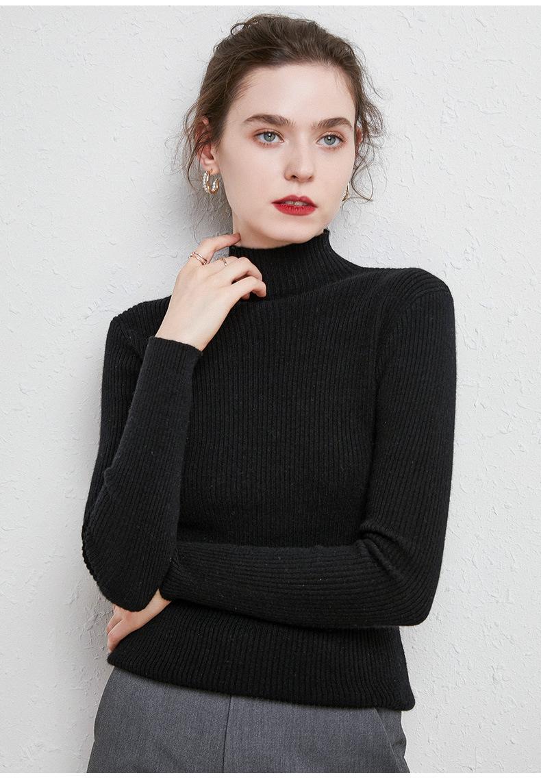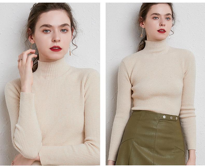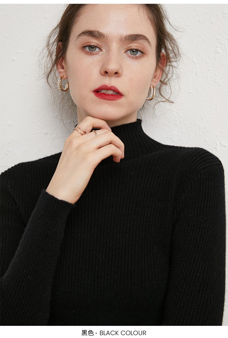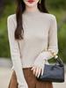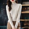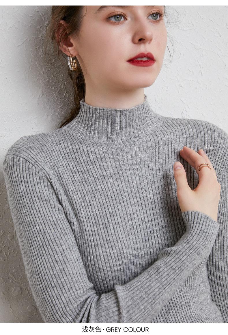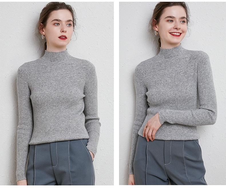 Suéter de Mujer para Otoño e Invierno, Nuevo Tejido Jersey, Estilo Elegante para la Oficina, Camisa Base de Viscosa Gris de Cuello Alto Sólido de Manga Larga