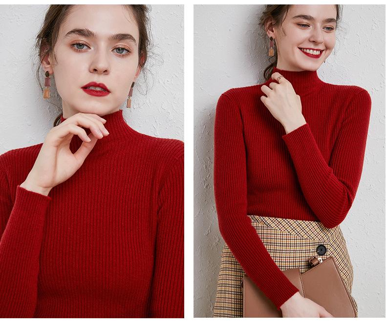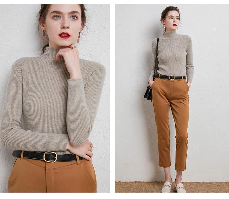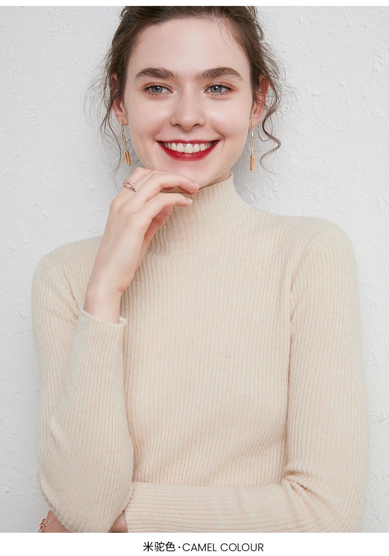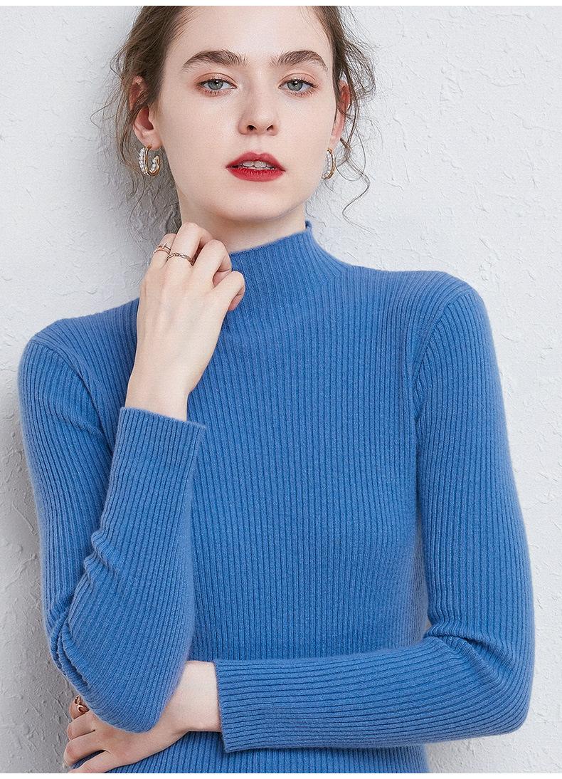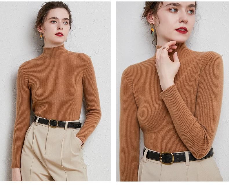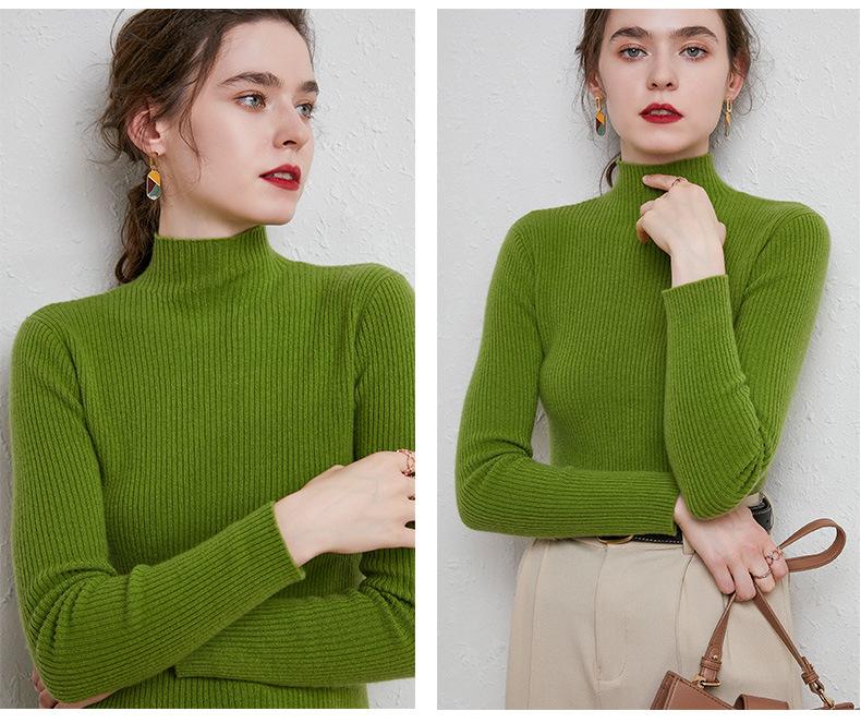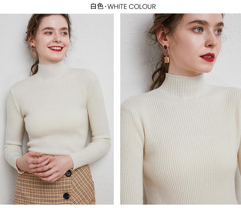 Suéter de Mujer para Otoño e Invierno, Nuevo Tejido Jersey, Estilo Elegante para la Oficina, Camisa Base de Viscosa Gris de Cuello Alto Sólido de Manga Larga