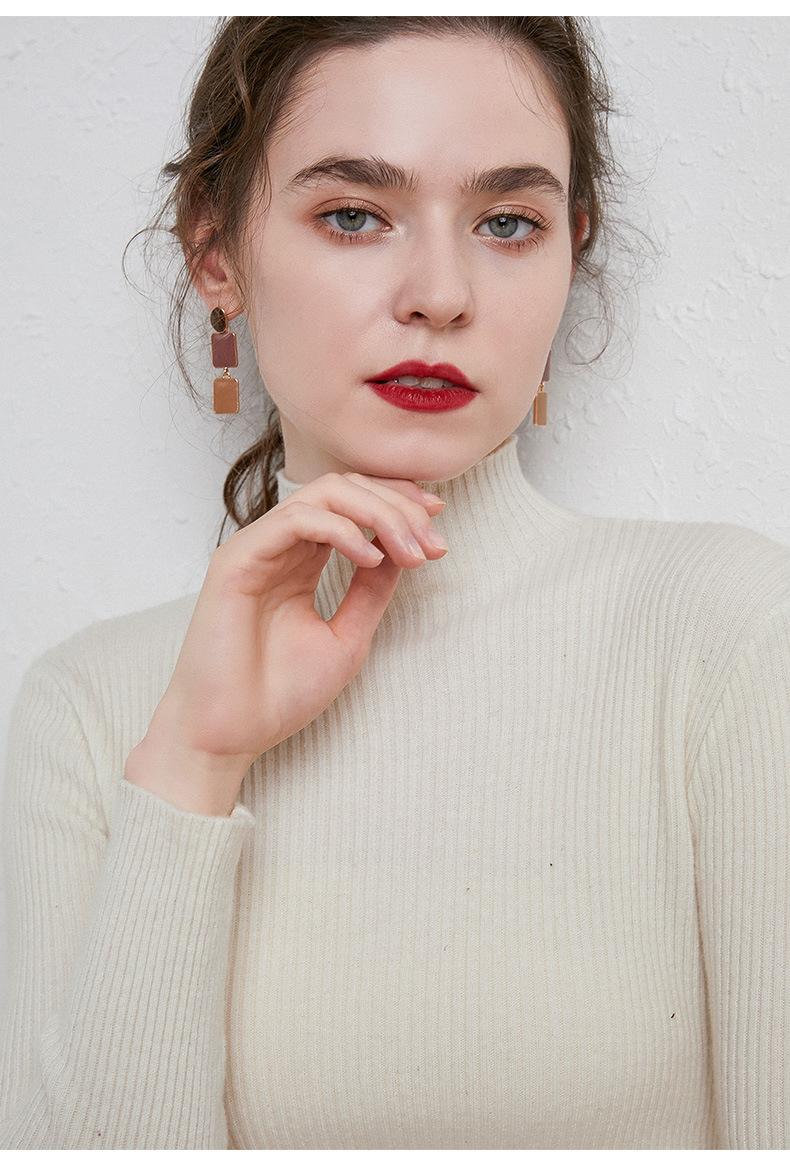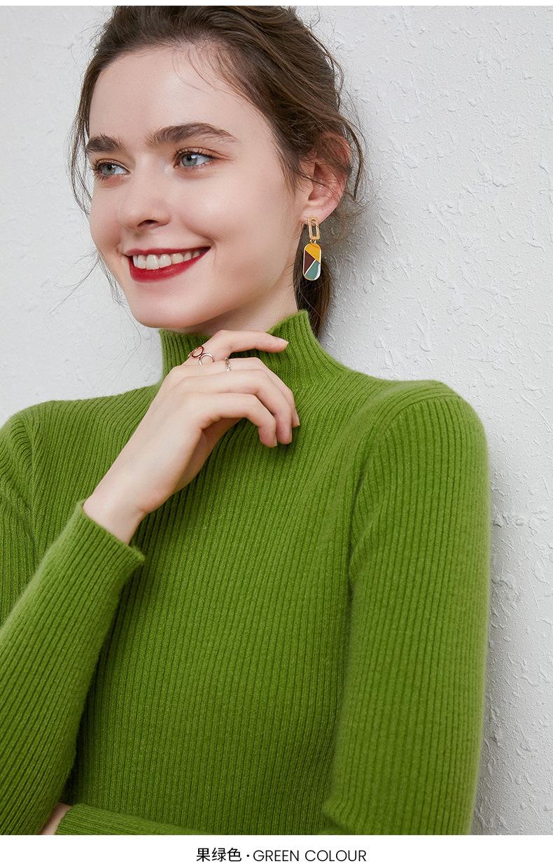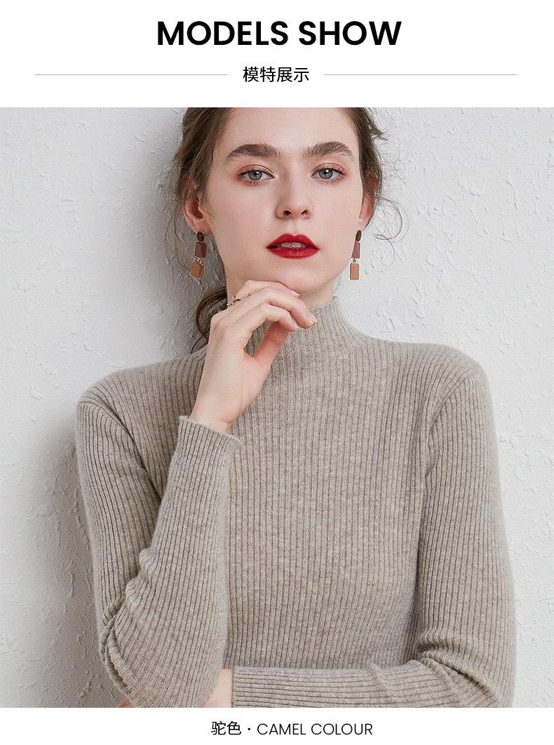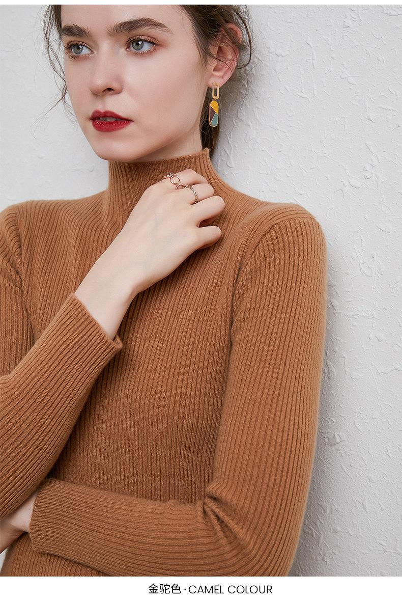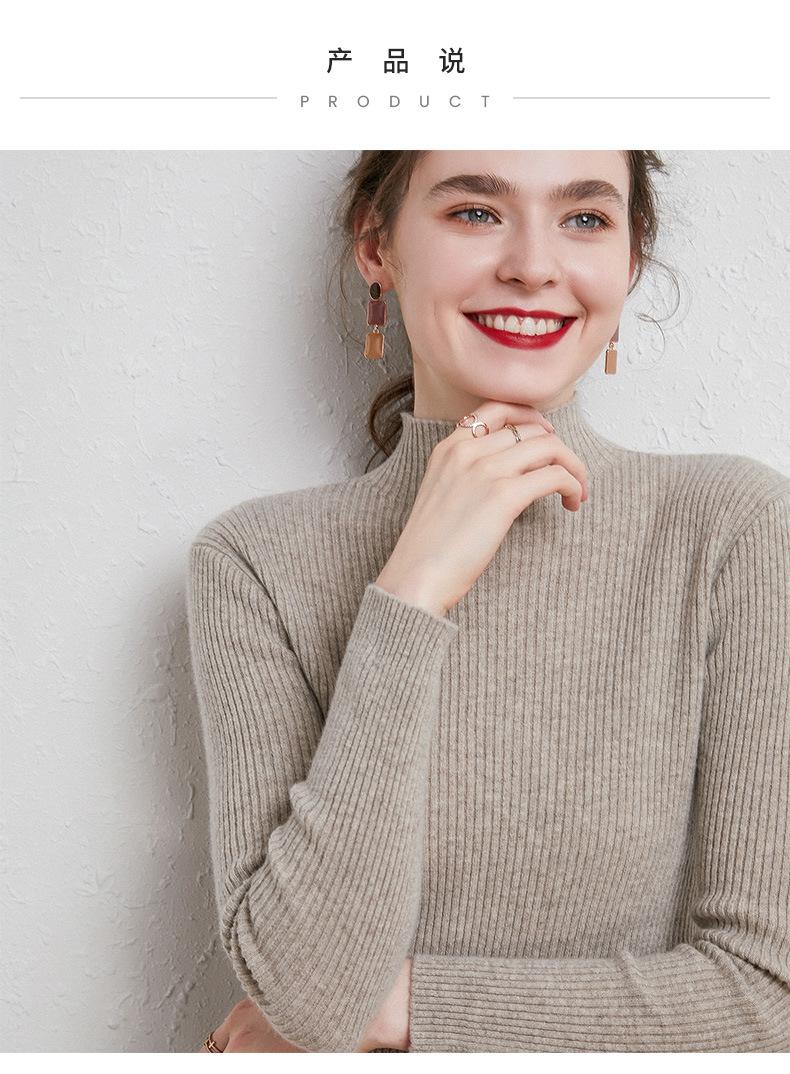 Suéter de Mujer para Otoño e Invierno, Nuevo Tejido Jersey, Estilo Elegante para la Oficina, Camisa Base de Viscosa Gris de Cuello Alto Sólido de Manga Larga