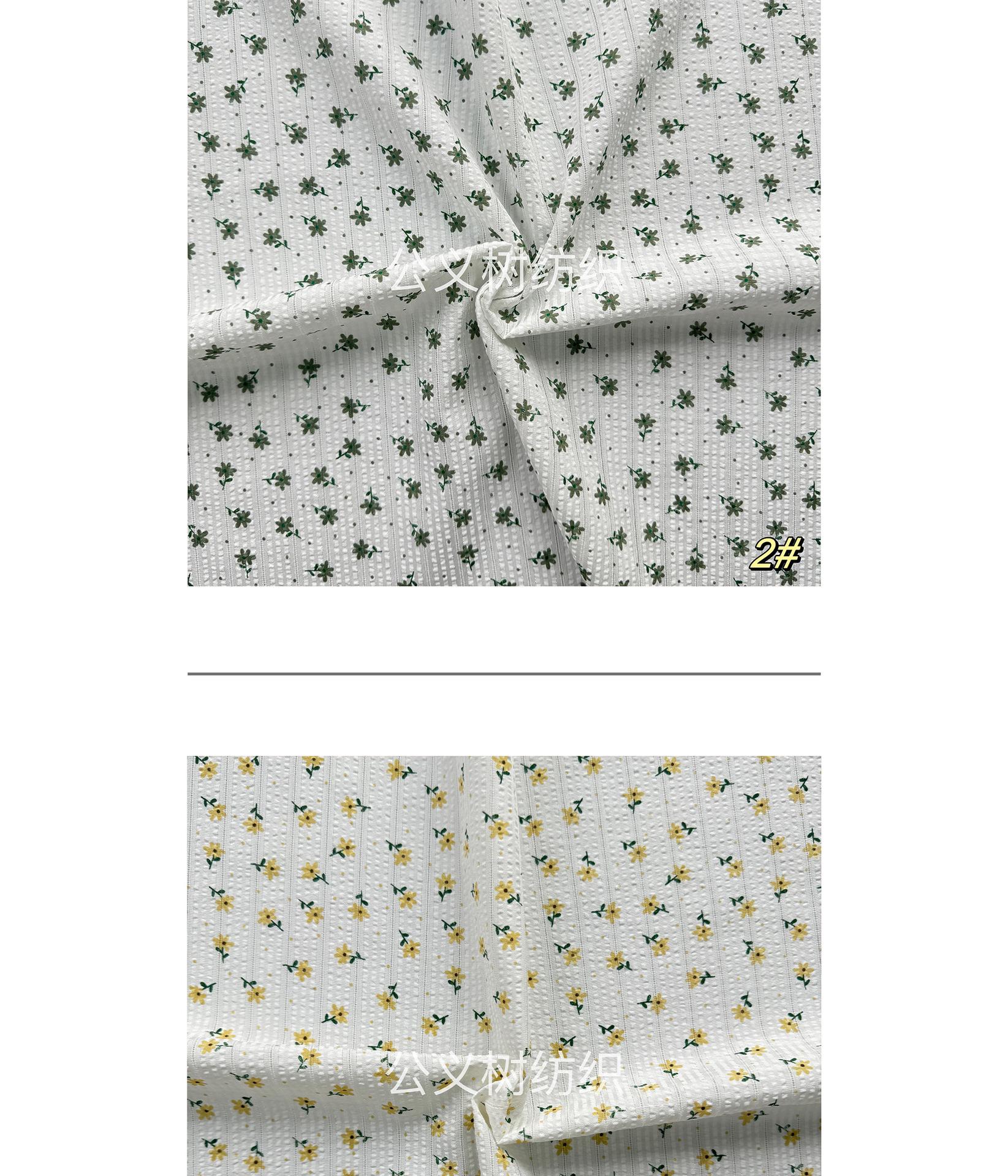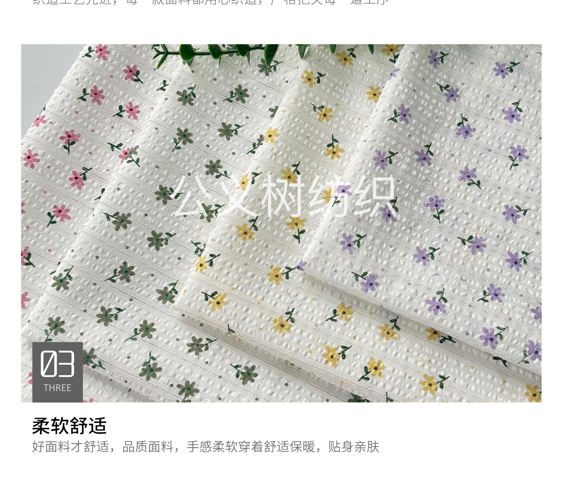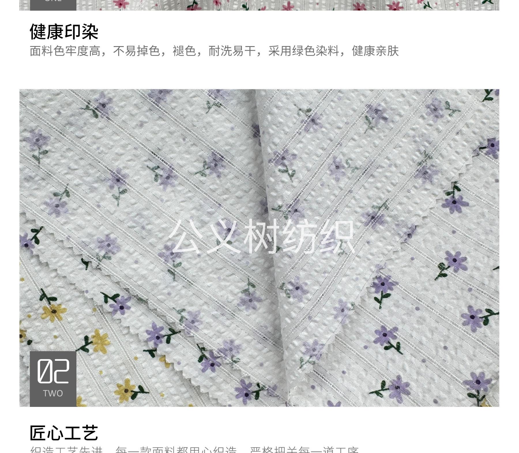 Tela estampada con textura de tiras de burbujas plateadas y estilo floral fresco, para ropa de mujer y niños.