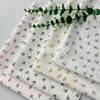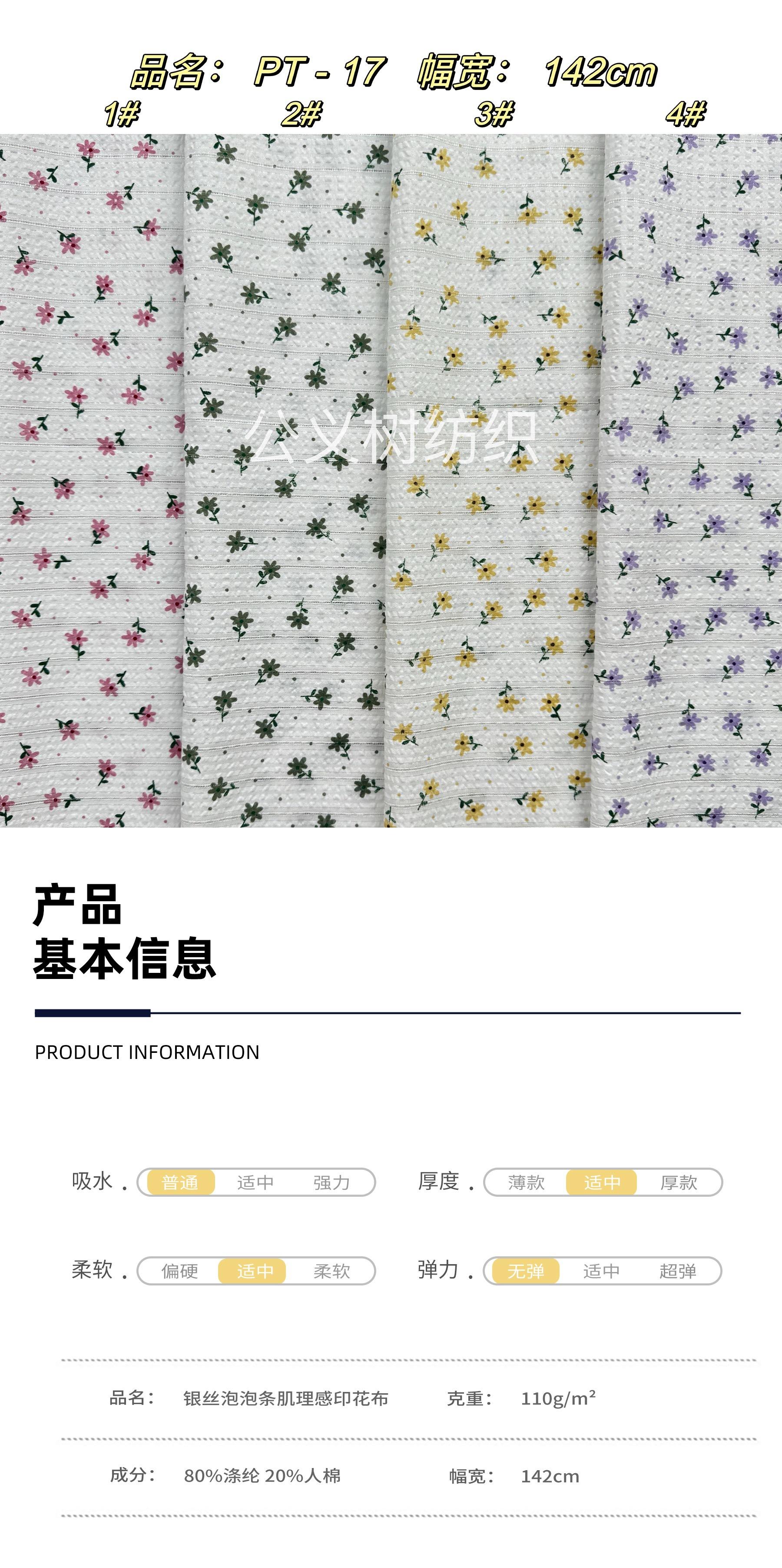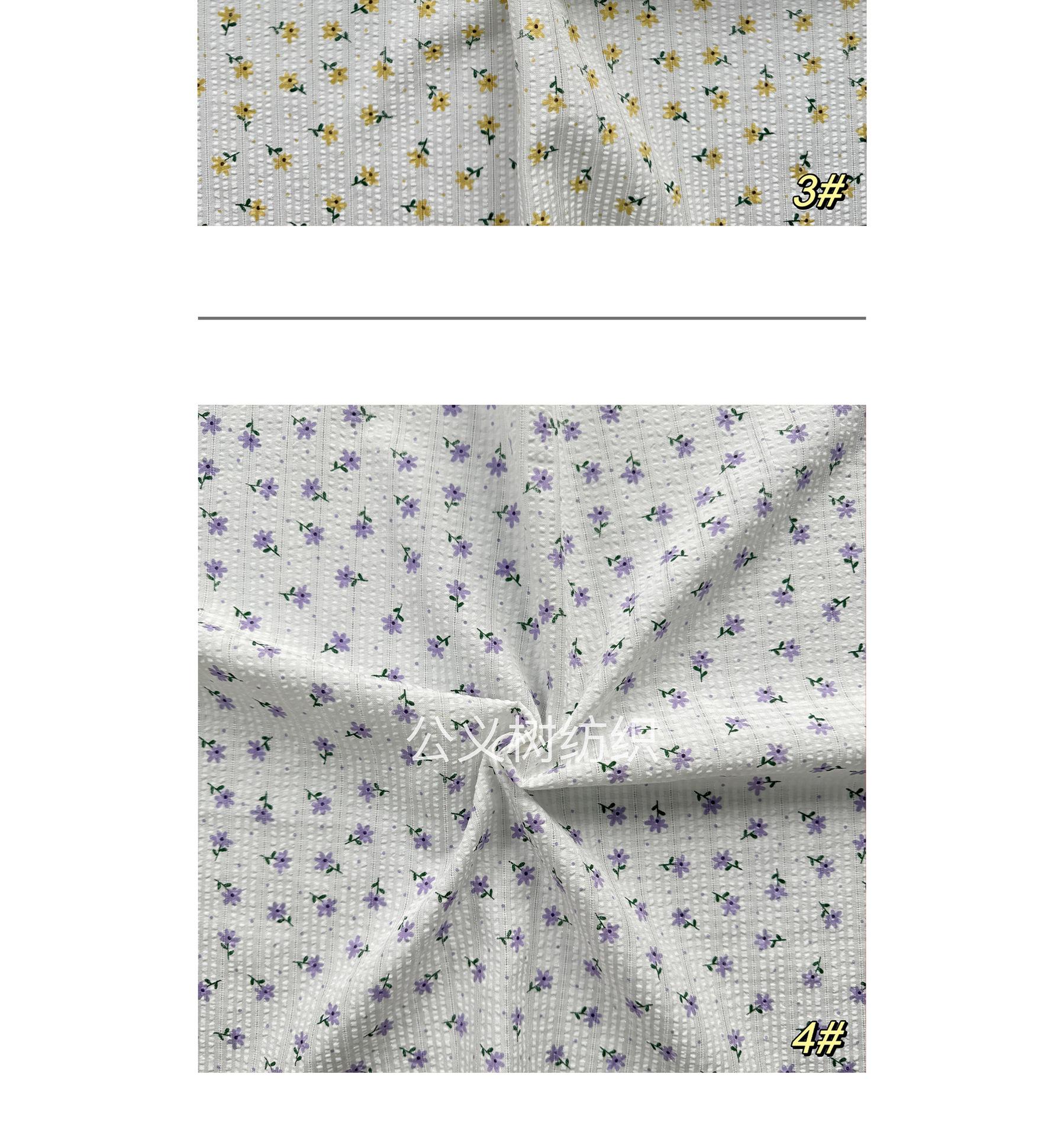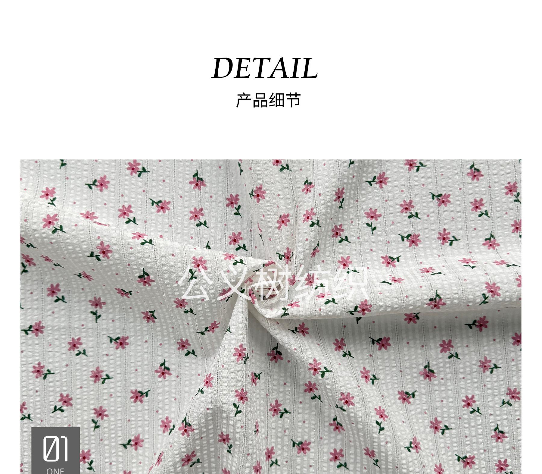 Tela estampada con textura de tiras de burbujas plateadas y estilo floral fresco, para ropa de mujer y niños.