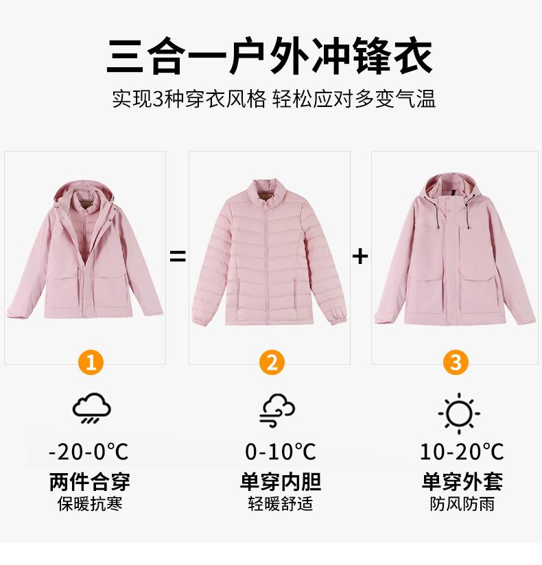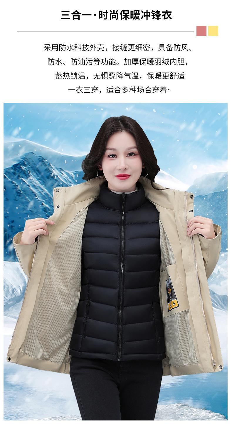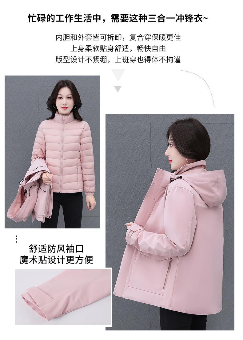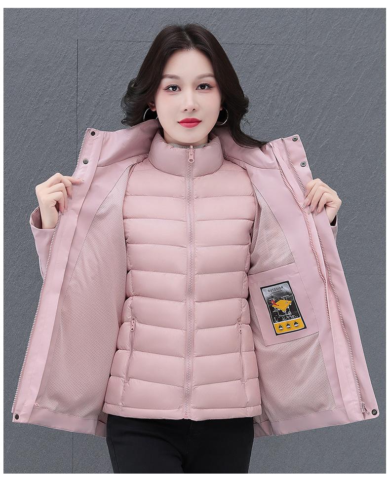 Chaqueta de Invierno Chaqueta de Mujer Chaqueta Tres en Uno de Invierno Engrosada para Exterior Cortavientos Impermeable Chaqueta Acolchada Forro Talla Grande