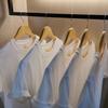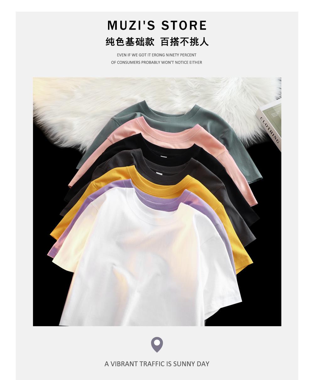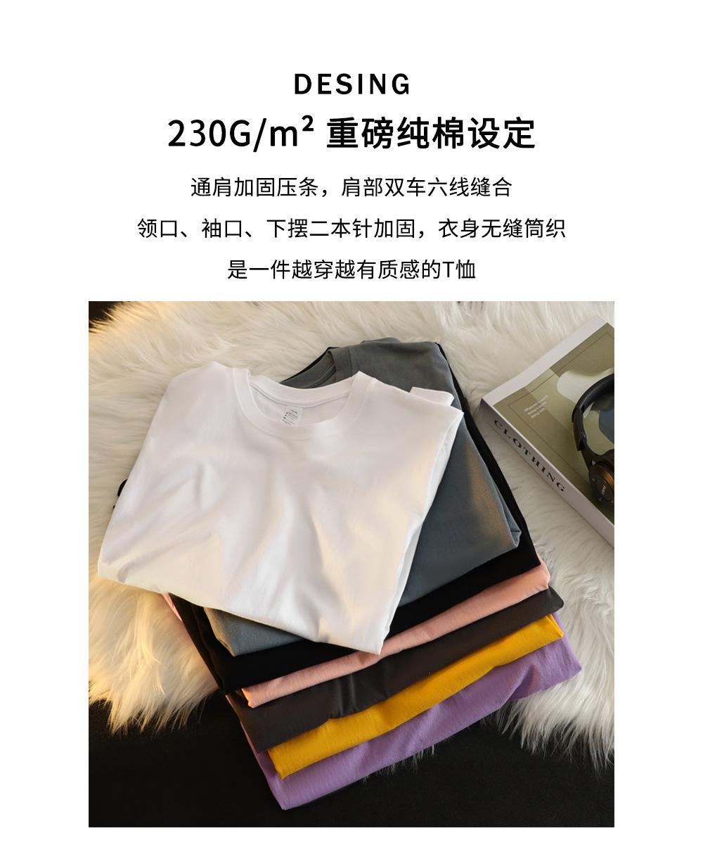 Camiseta de manga corta de algodón americano pesado de 230 g, para parejas de verano, color sólido, holgada, blanca pura, para hombres y mujeres, con logotipo.