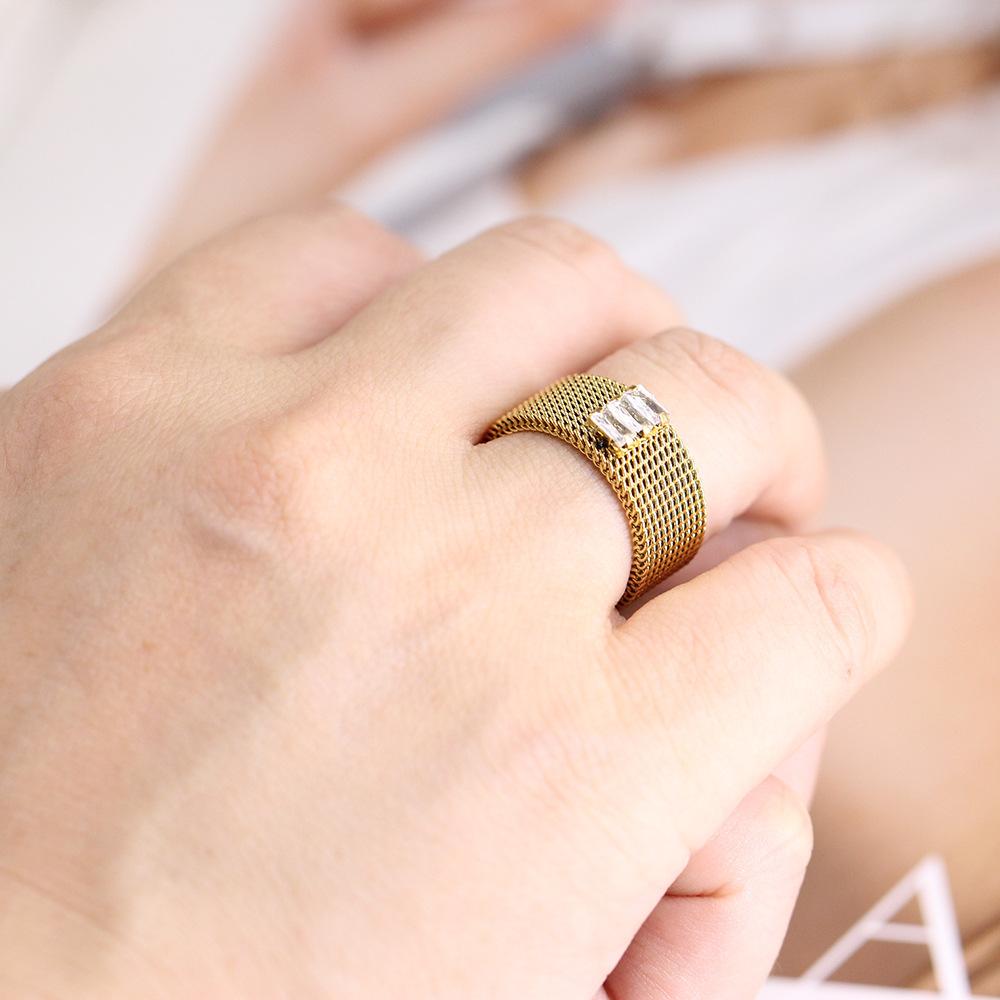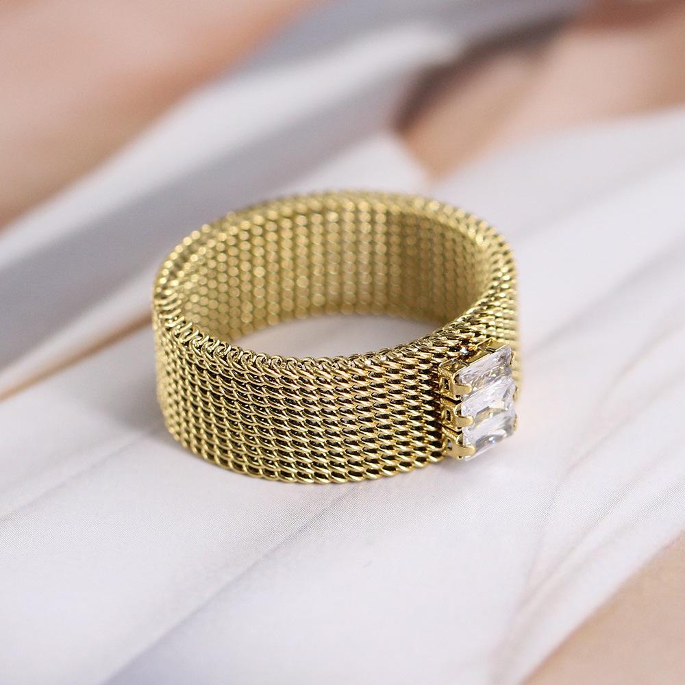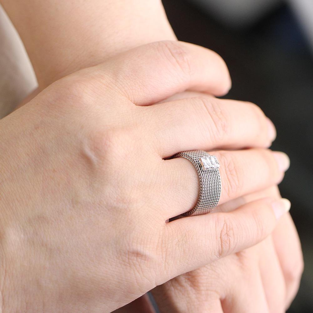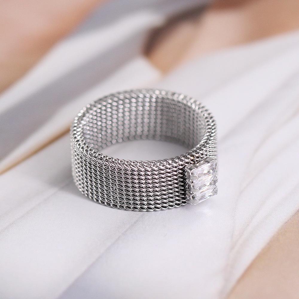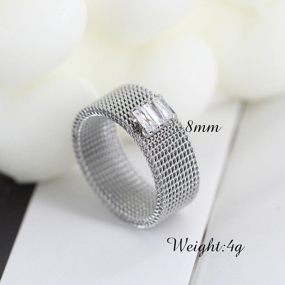 Anillo de malla de acero inoxidable 8 mm Wish nuevo anillo de diamantes de malla cara ancha deformable anillo de acero de titanio al por mayor para mujeres