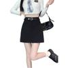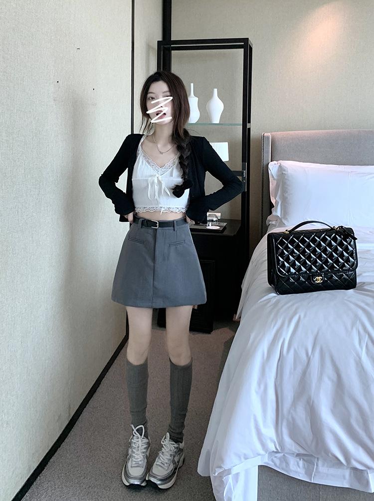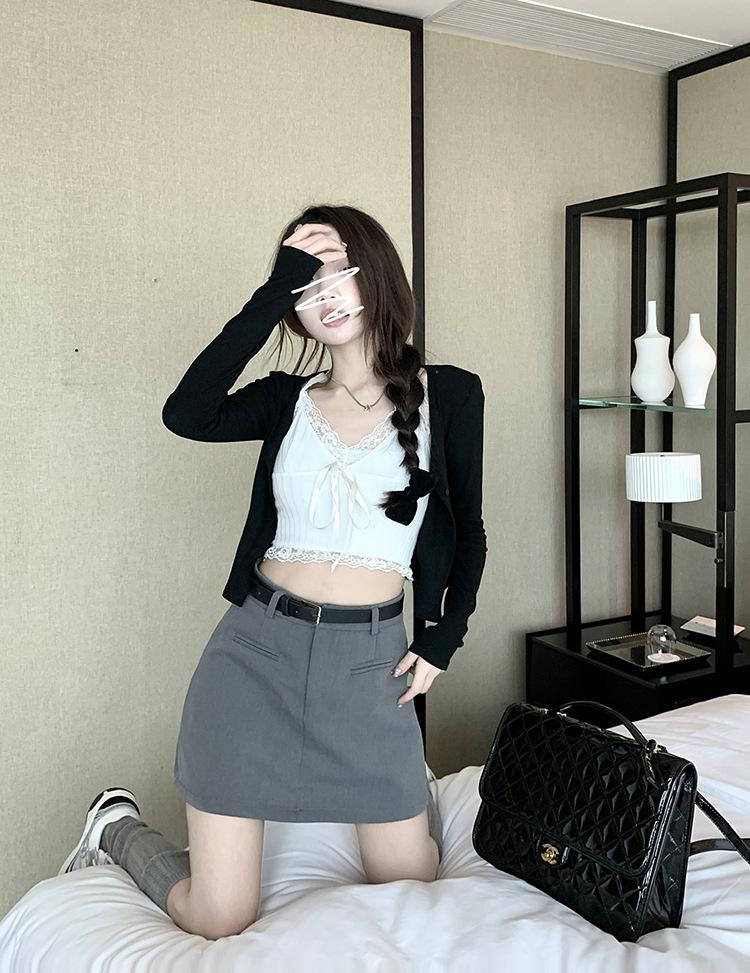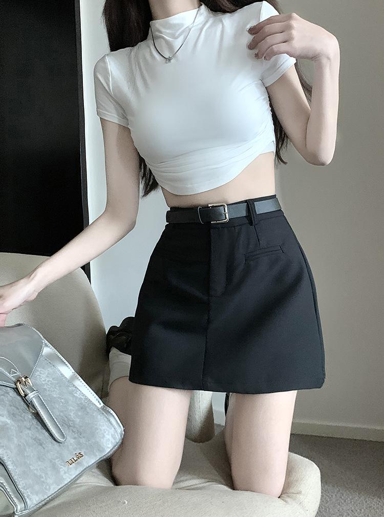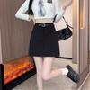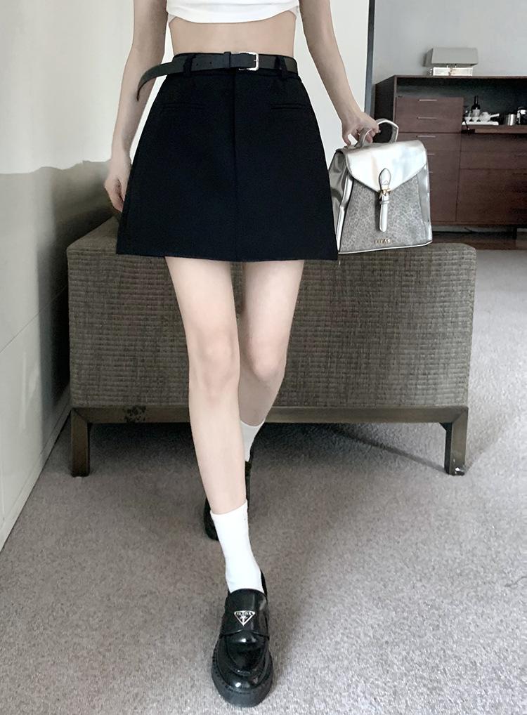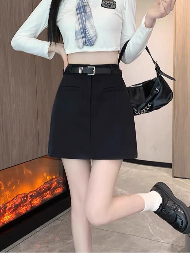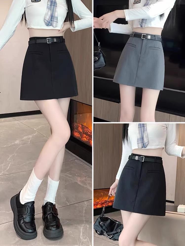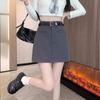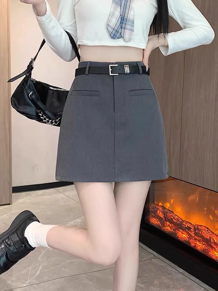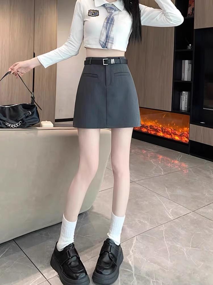 Falda de traje gris de verano para mujer, combina con todo, cintura alta, adelgazante, de un solo paso, diseño de falda tipo A, falda de cadera para chica sexy