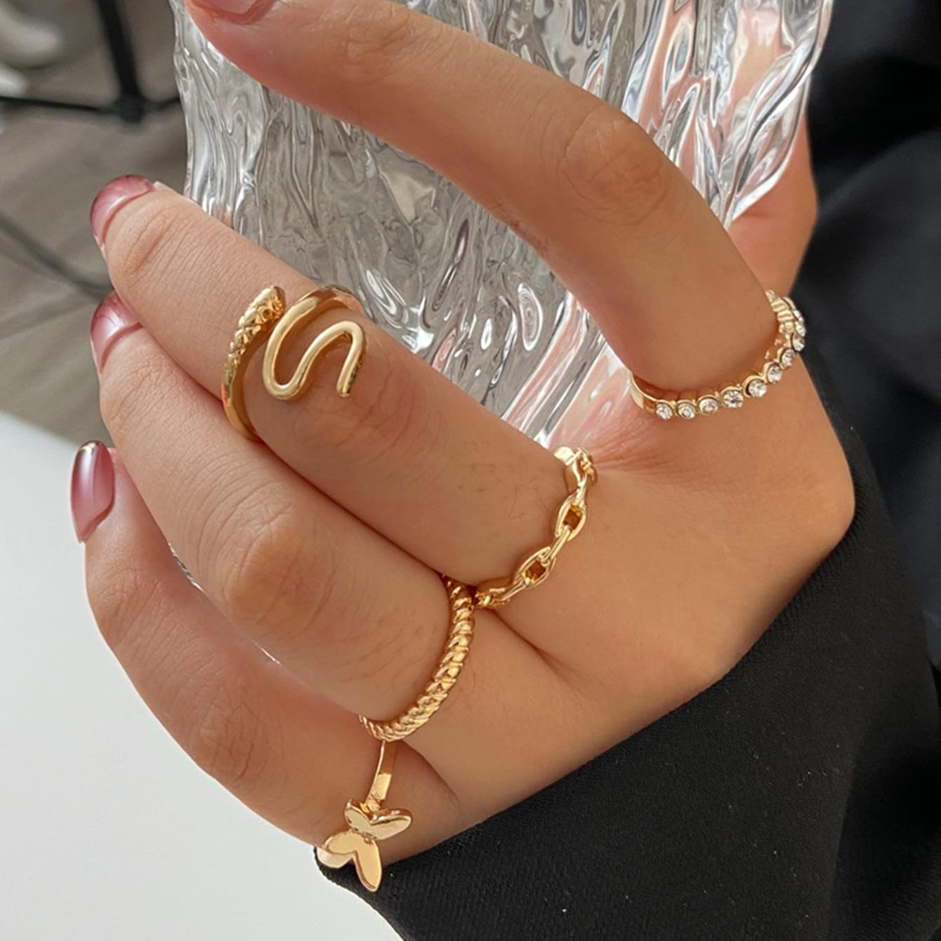 Europa y Estados Unidos transfronterizo nuevo apertura de mariposa multiarticulado juego de anillos 22 piezas de amor cristal anillo anillo mujer