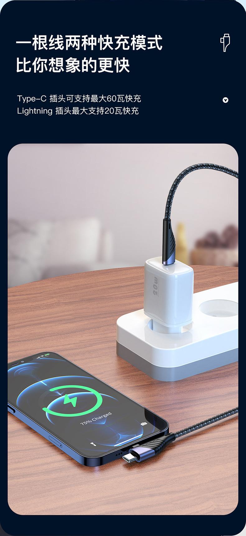 Totalmente compatible con función de cabezal múltiple cuatro en uno nuevo cable de datos 5A regalo creativo cable de datos de carga rápida PD carga flash typec