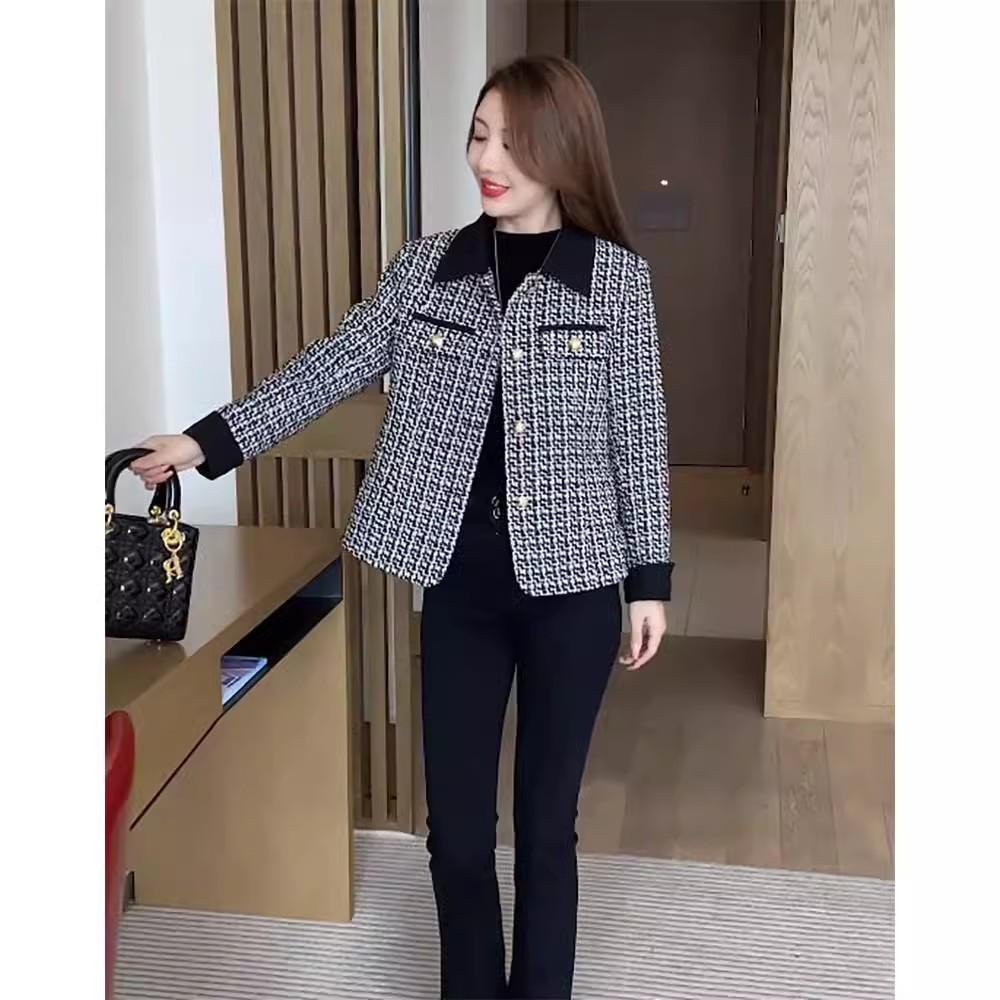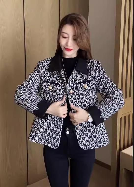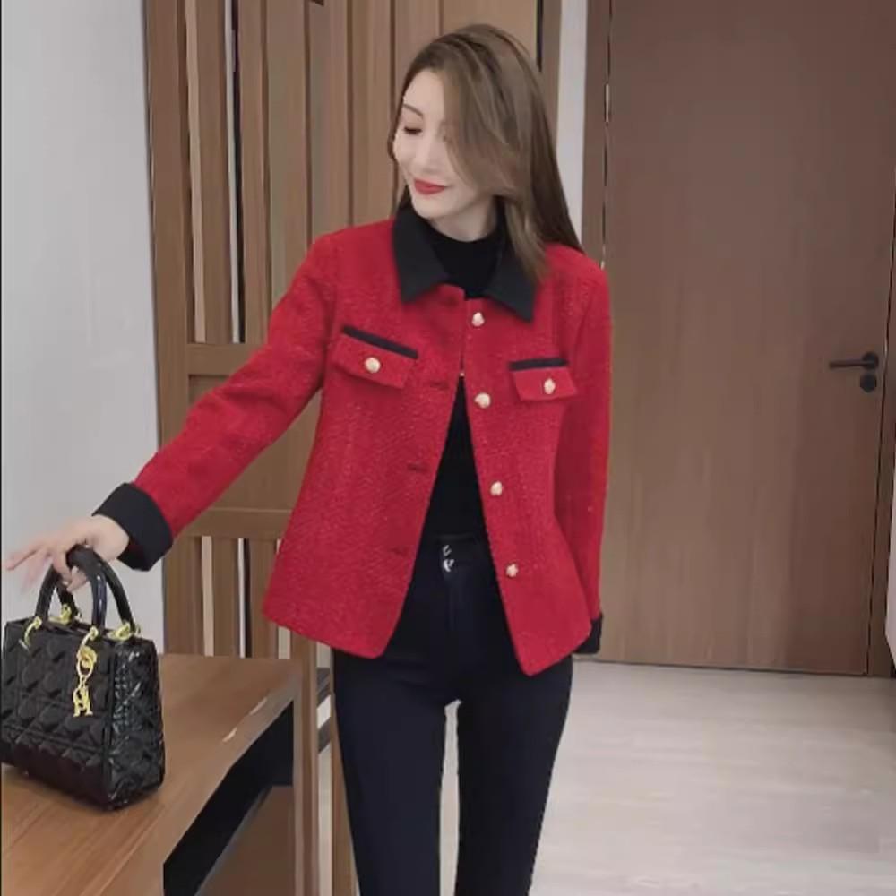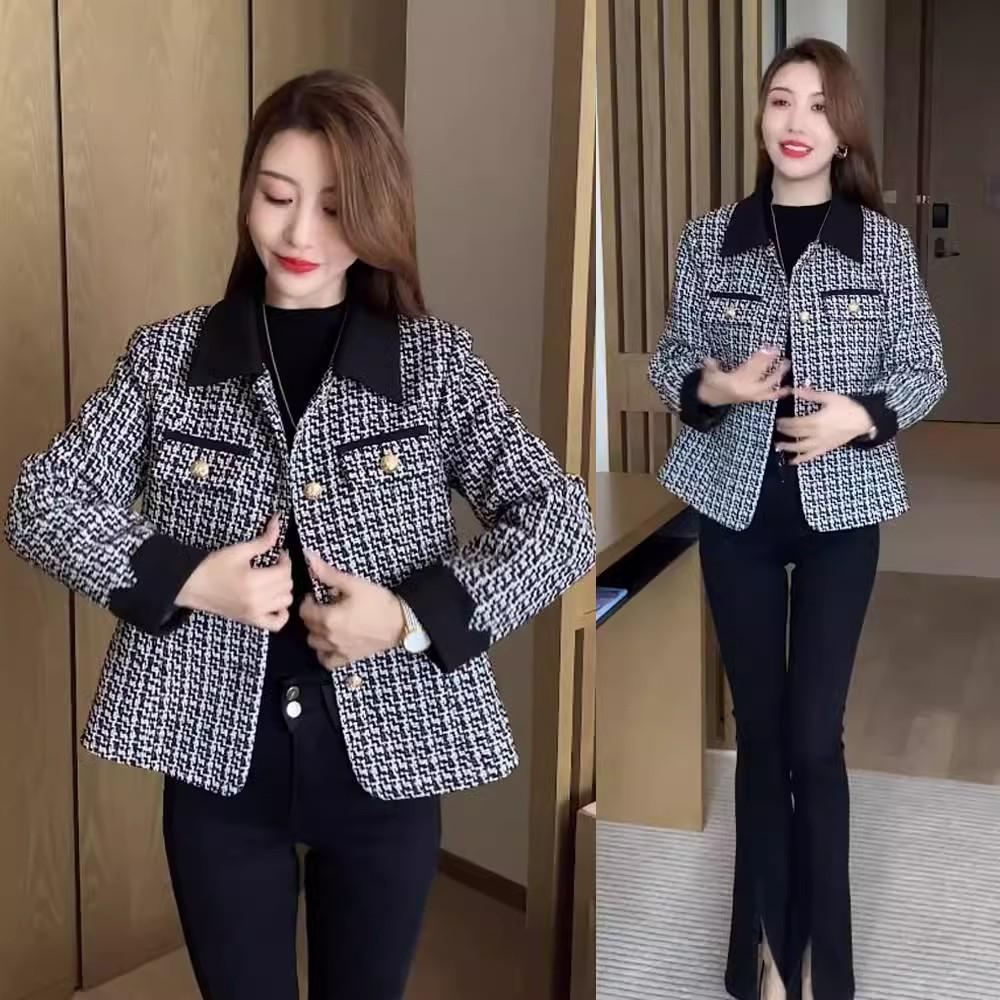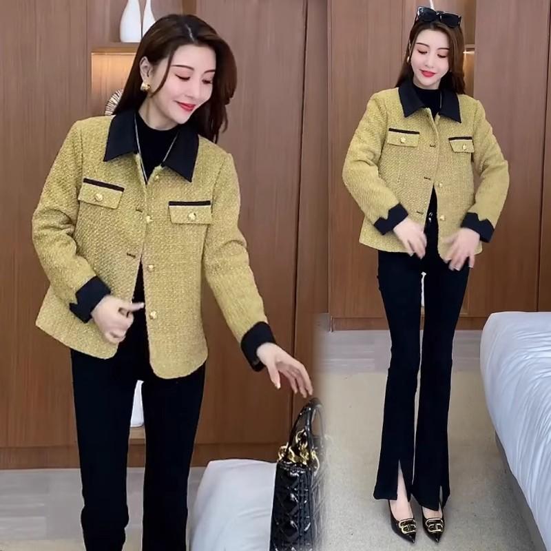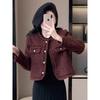 Abrigo corto estilo tweed para madres, estilo nuevo, delgado y elegante, abrigo corto de lana moderno para mujeres pequeñas