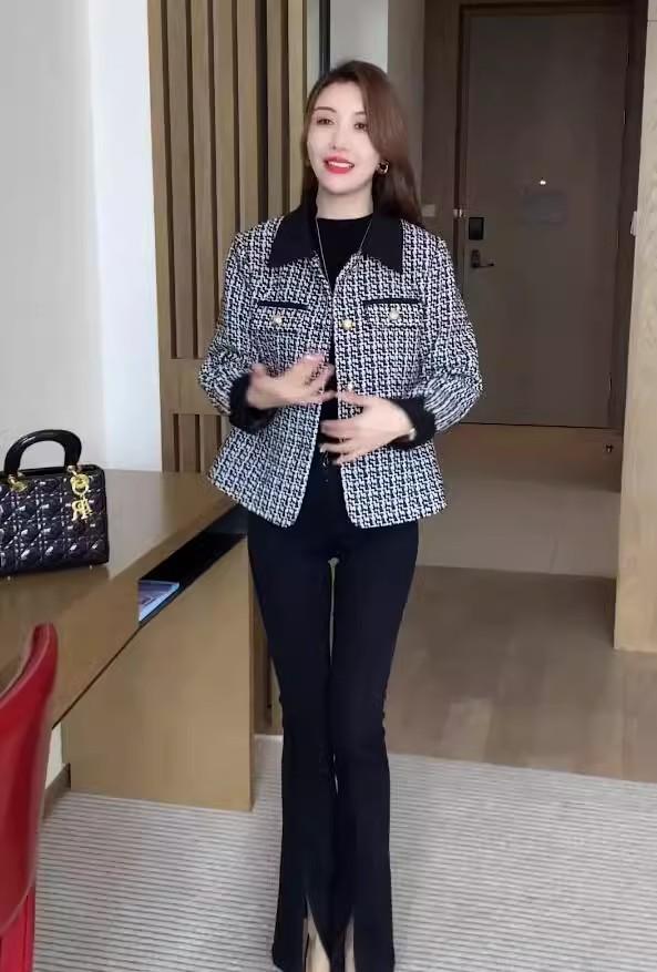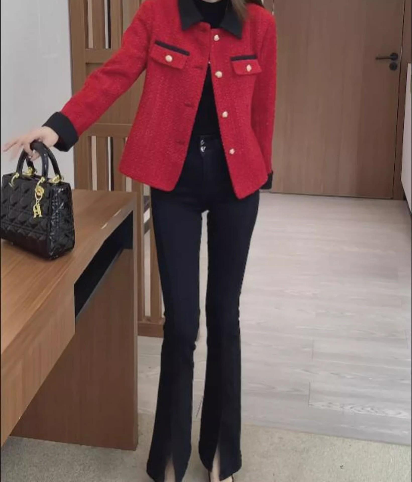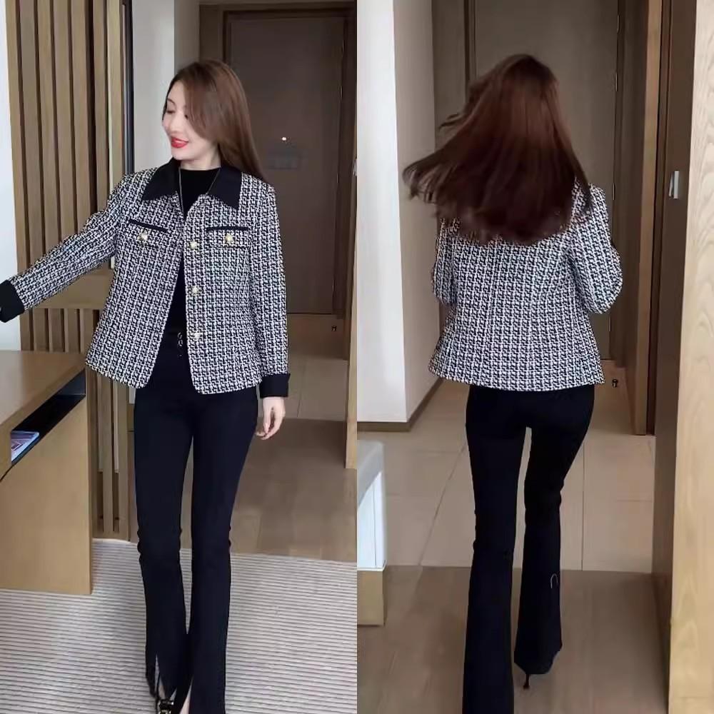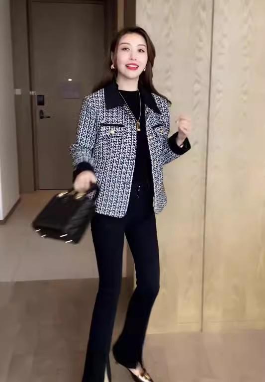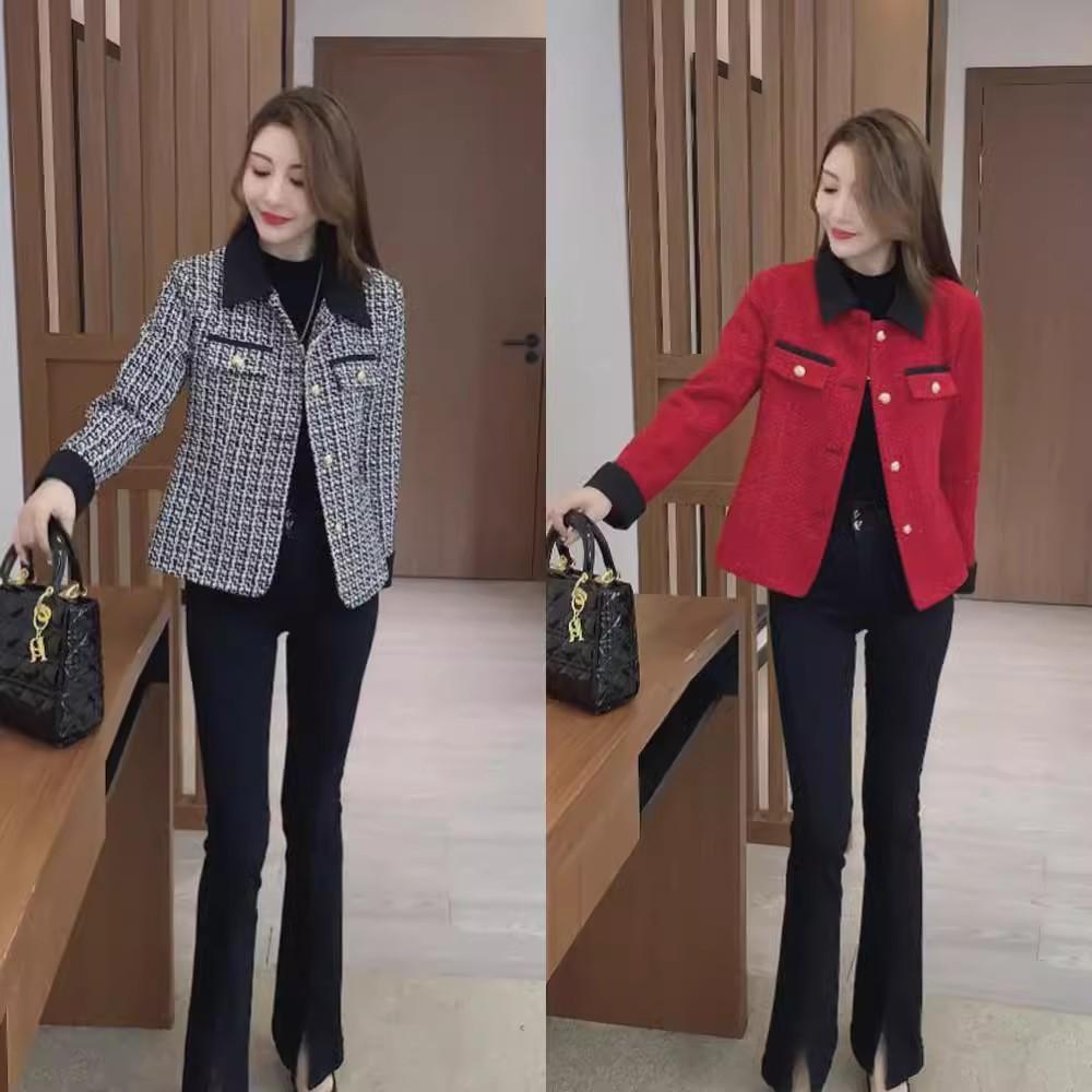 Abrigo corto estilo tweed para madres, estilo nuevo, delgado y elegante, abrigo corto de lana moderno para mujeres pequeñas