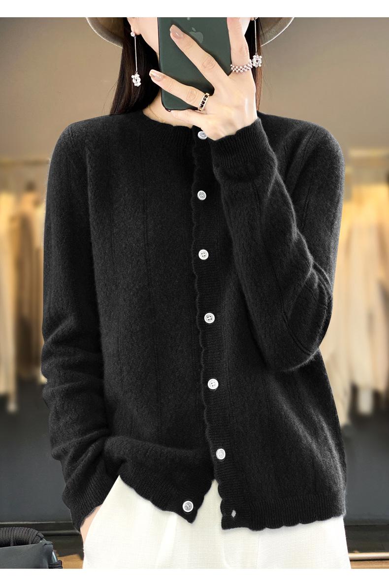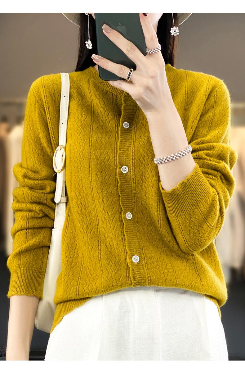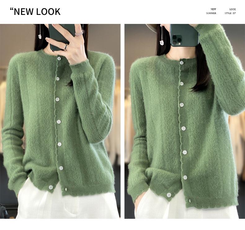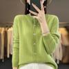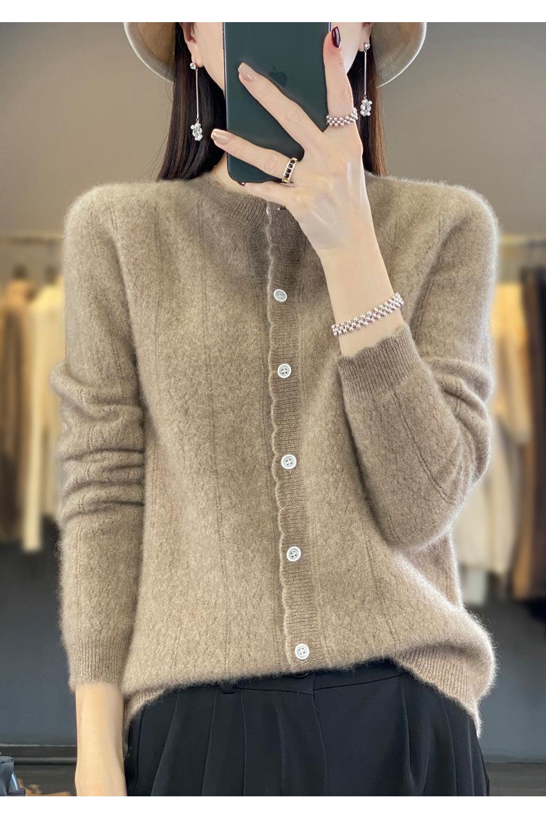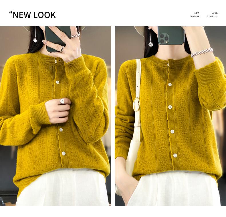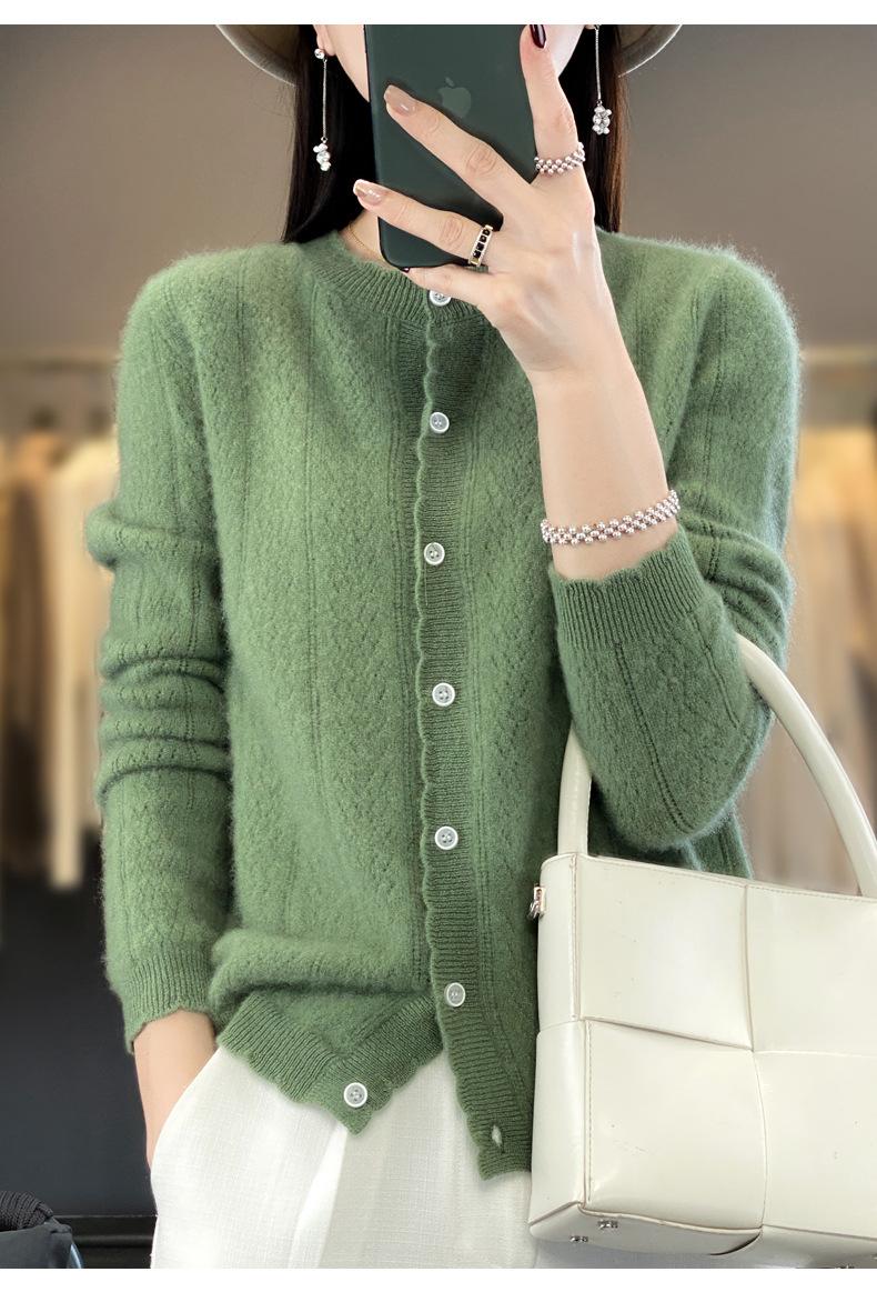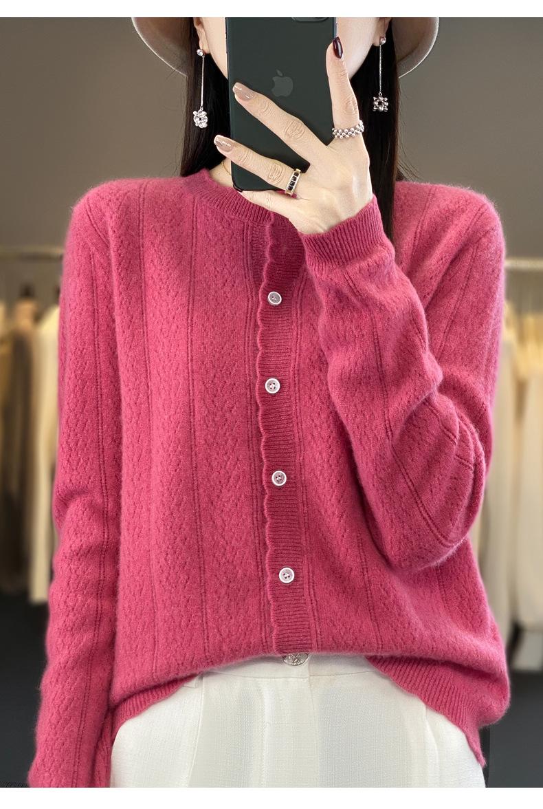 Suéter calado de punto de lana 100 pura, abrigo de moda, nuevo cárdigan, otoño e invierno, cuello redondo, manga larga, de alta calidad, suave
