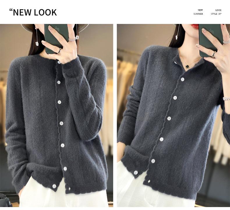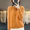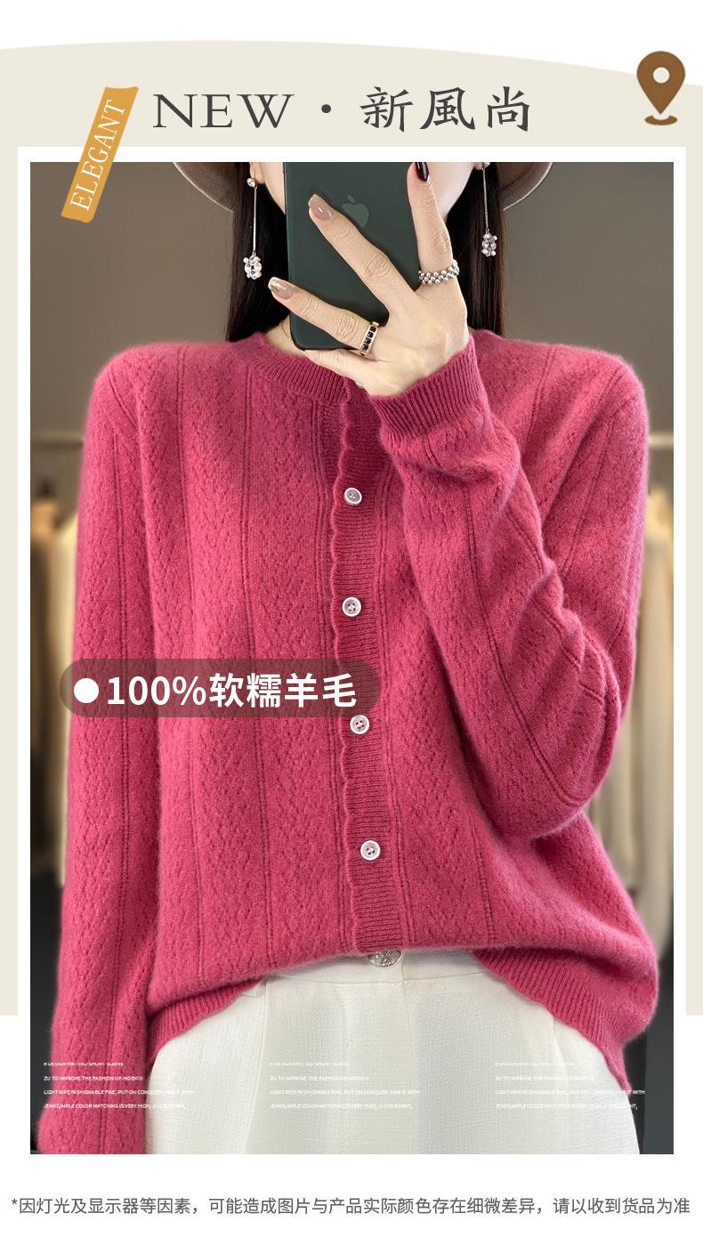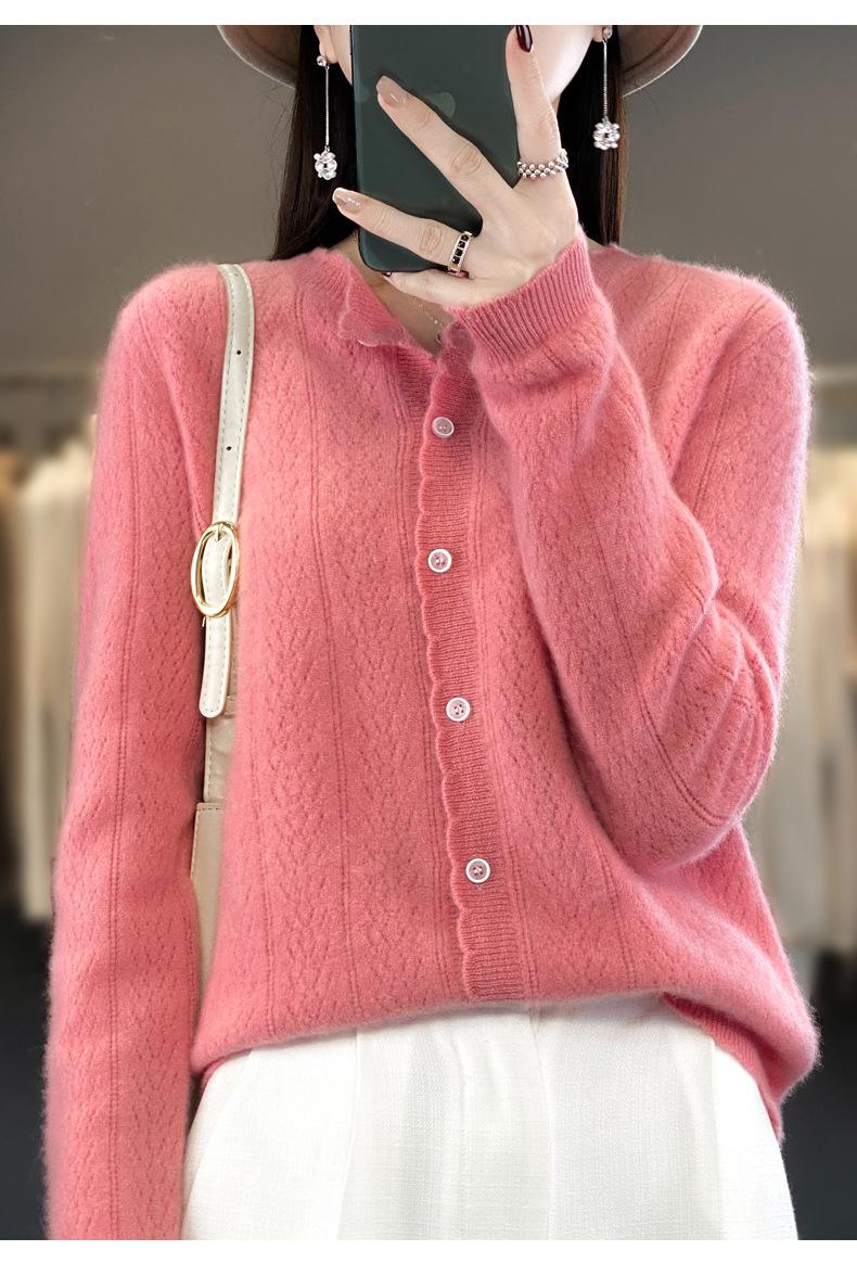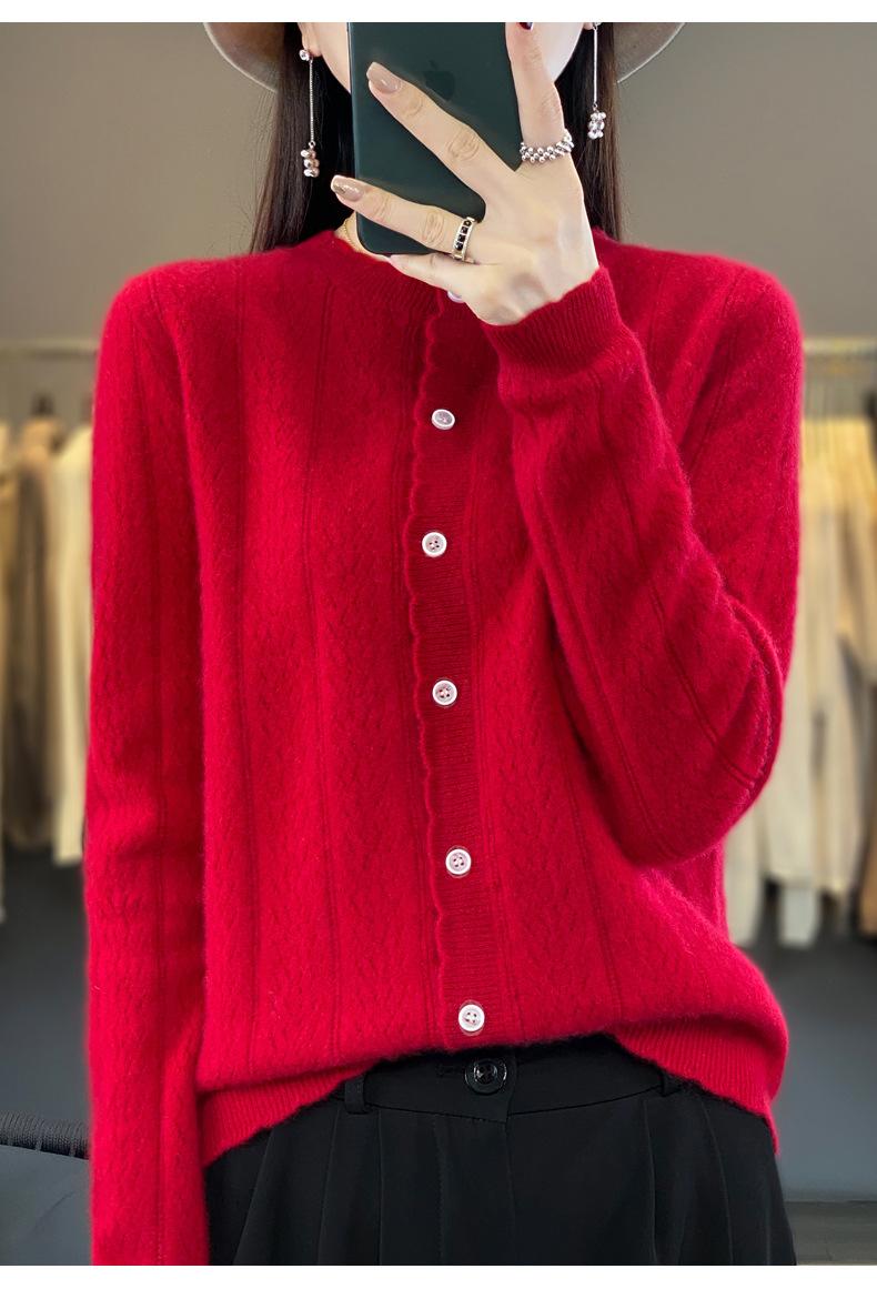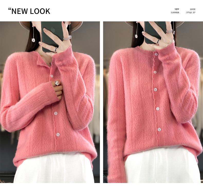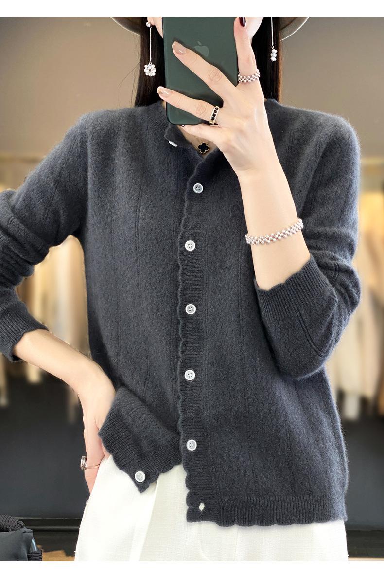 Suéter calado de punto de lana 100 pura, abrigo de moda, nuevo cárdigan, otoño e invierno, cuello redondo, manga larga, de alta calidad, suave