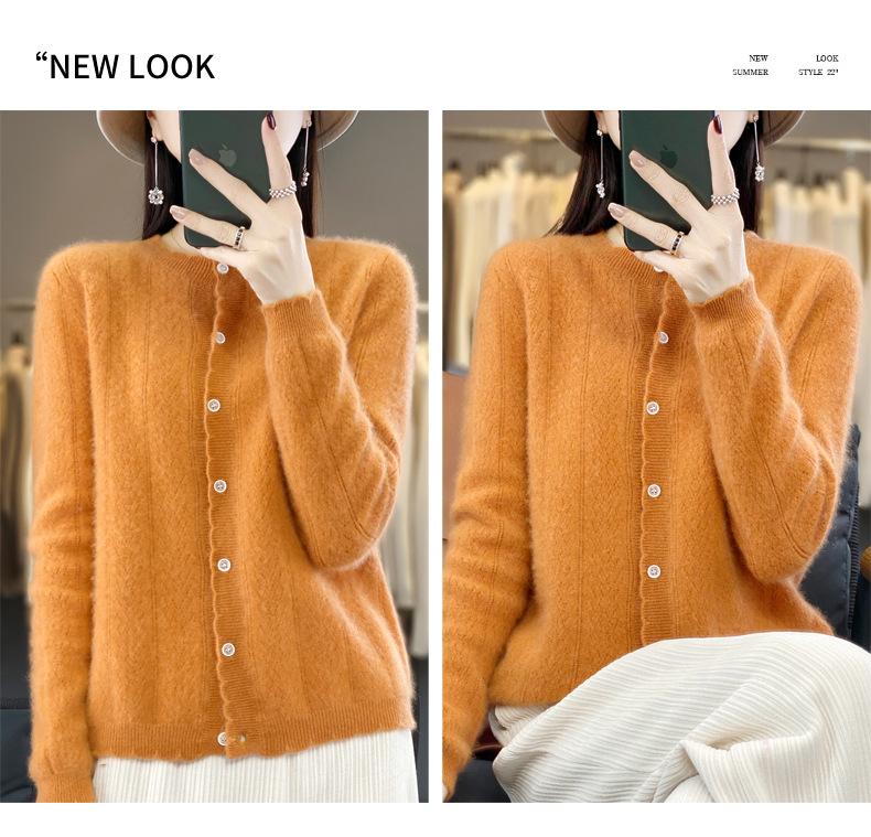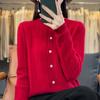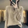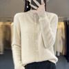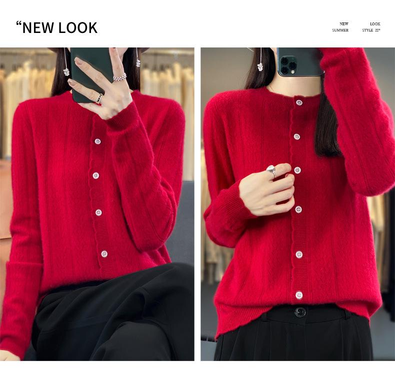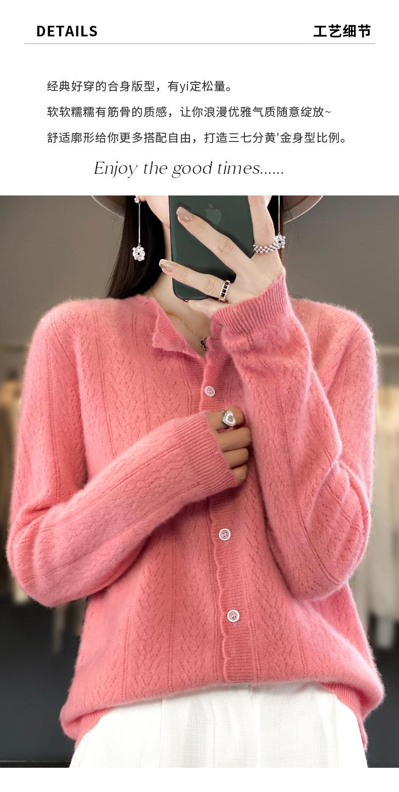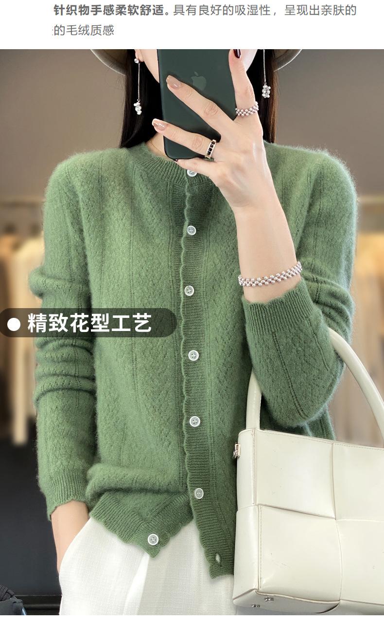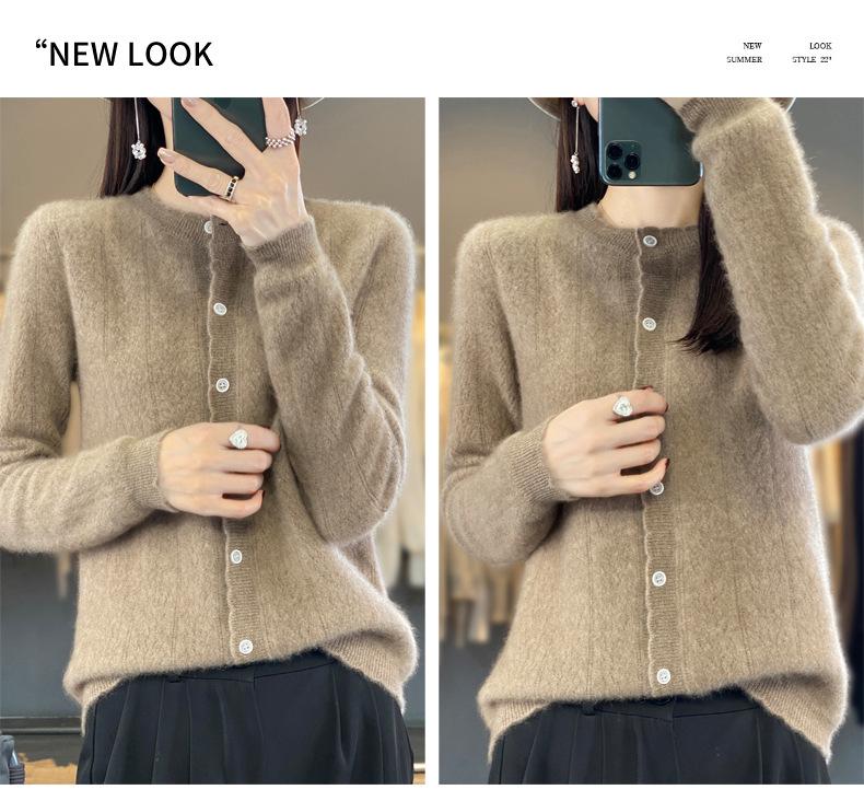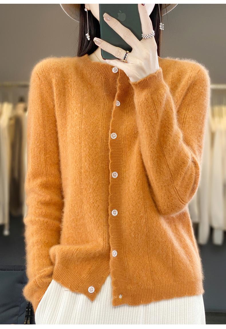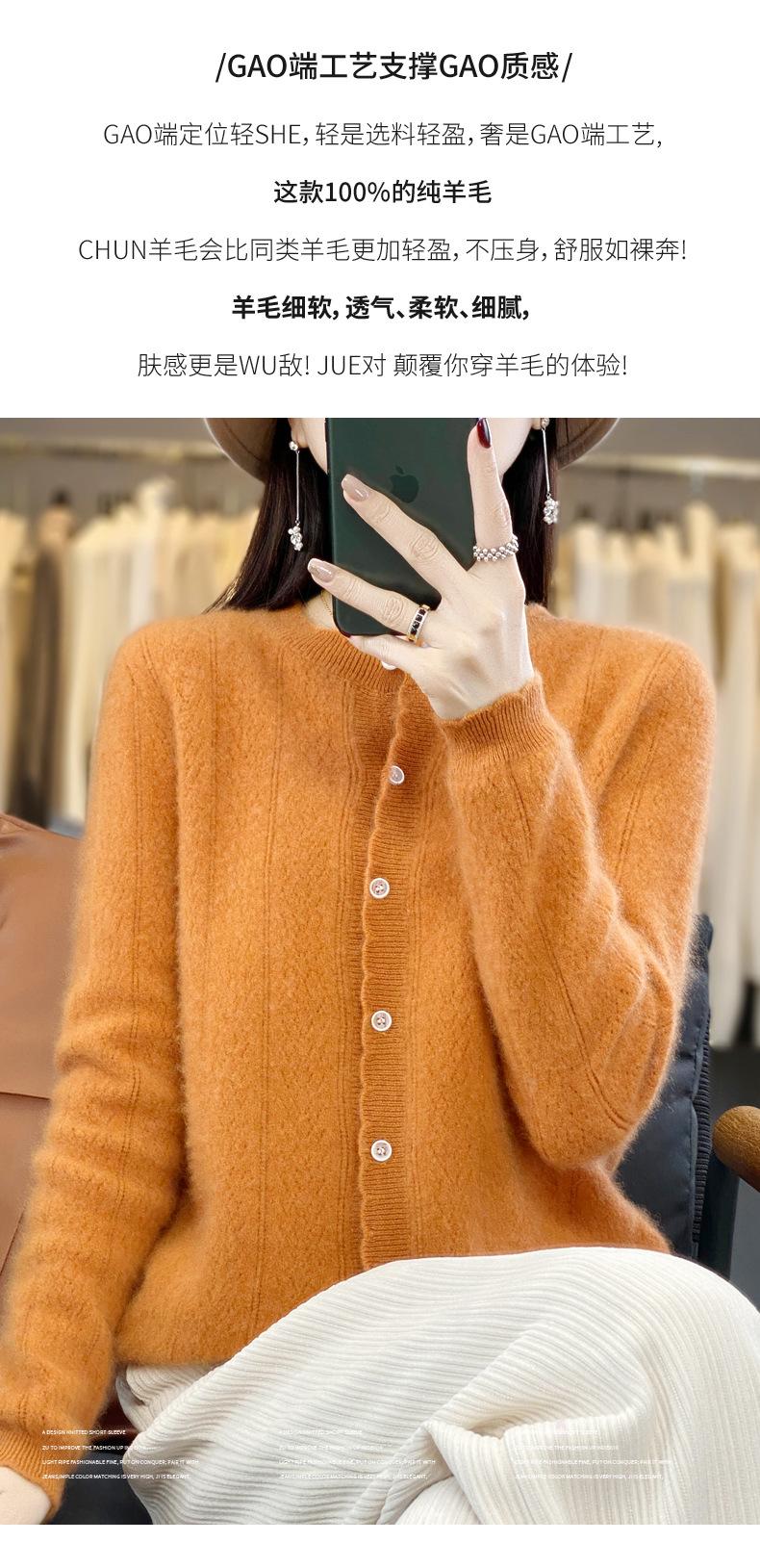 Suéter calado de punto de lana 100 pura, abrigo de moda, nuevo cárdigan, otoño e invierno, cuello redondo, manga larga, de alta calidad, suave