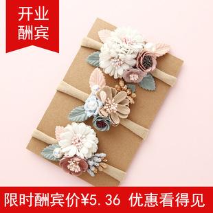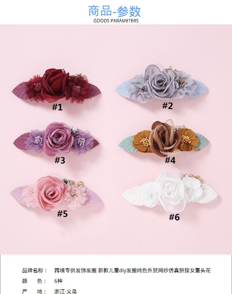 Accesorios para el cabello de venta caliente transfronteriza banda para el cabello arte en tela europeo y americano bebé banda para el cabello sin costuras 8 colores perla empalme de malla flor para la cabeza de niña |