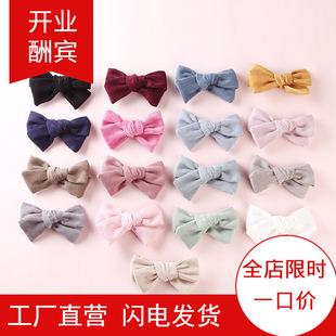 Suministro directo transfronterizo de sombreros y accesorios para el cabello para comercio exterior, pinza para el cabello de tela de pana suave DIY de 17 colores con lazo para niñas |