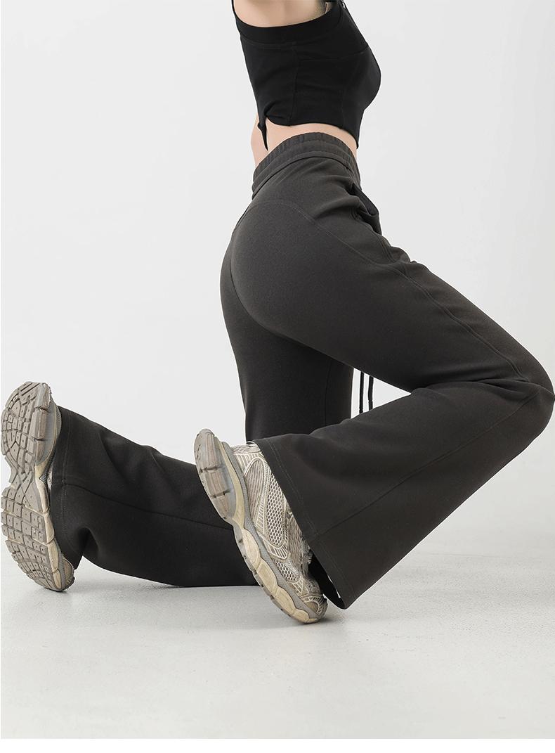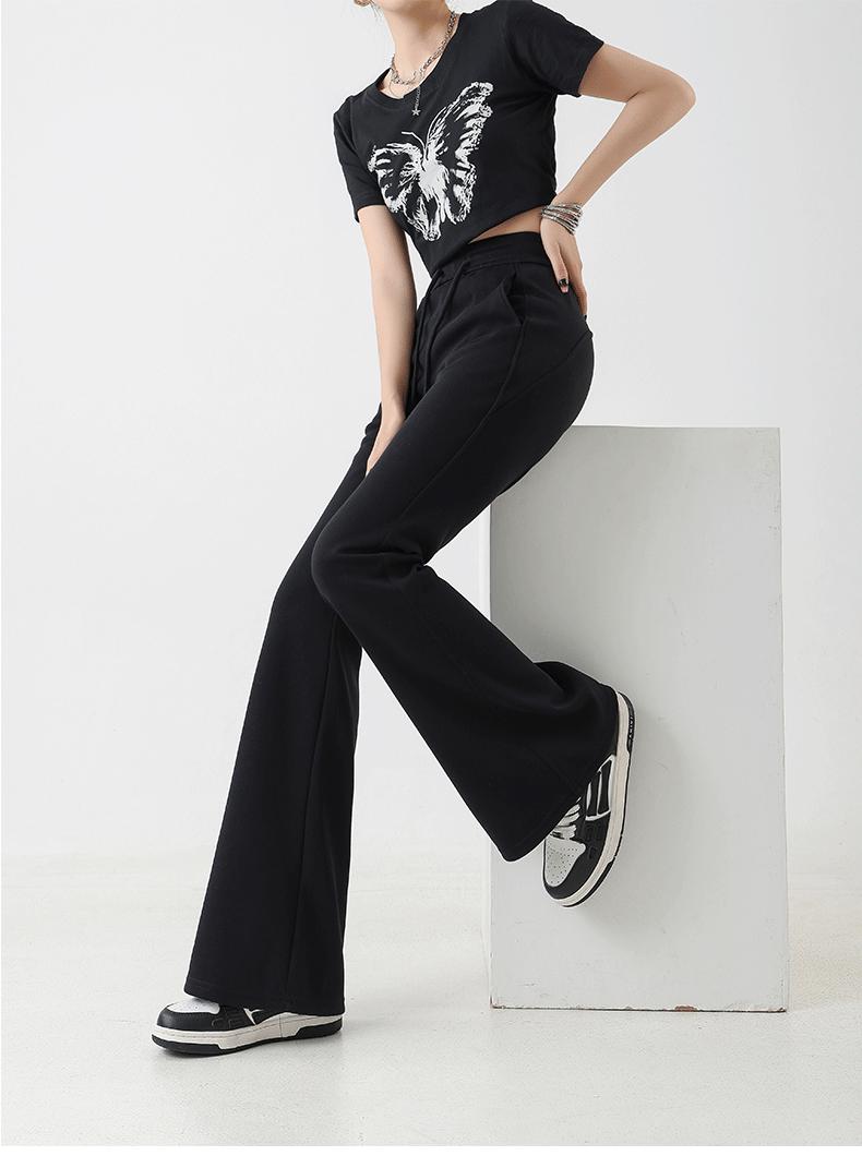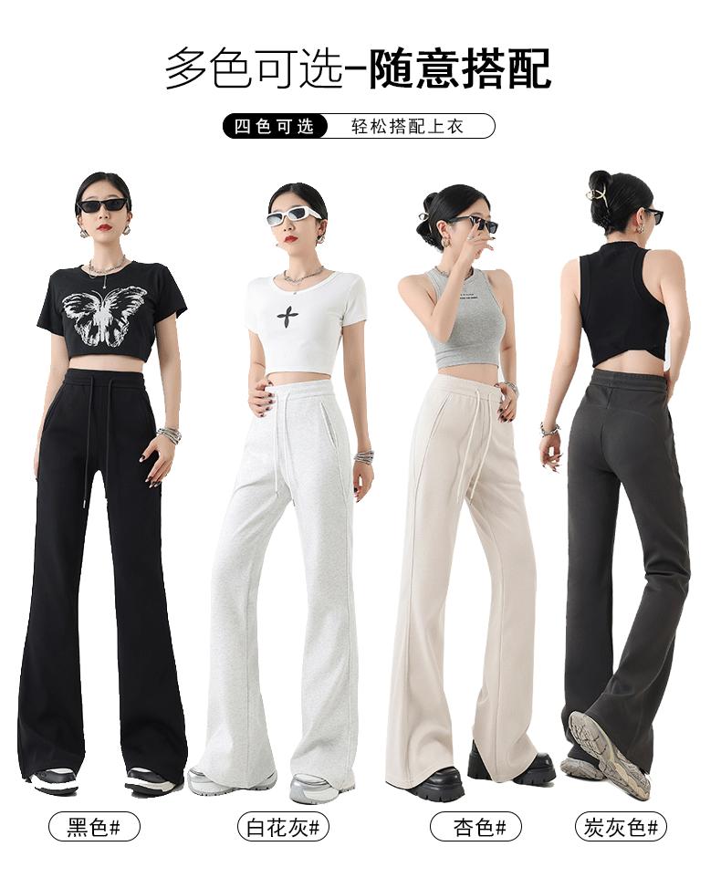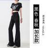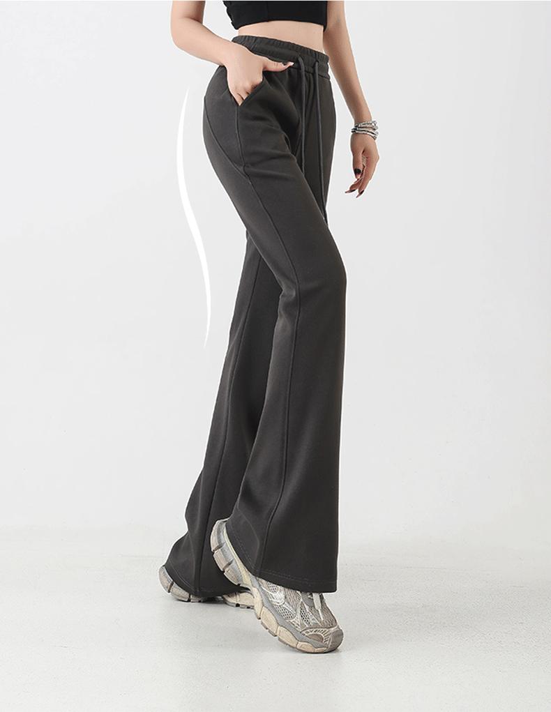 Pantalones de bolsillo genuinos para mujer, nuevos pantalones de otoño con pierna ancha y microacampanados, pantalones deportivos casuales rectos y adelgazantes de cintura alta.