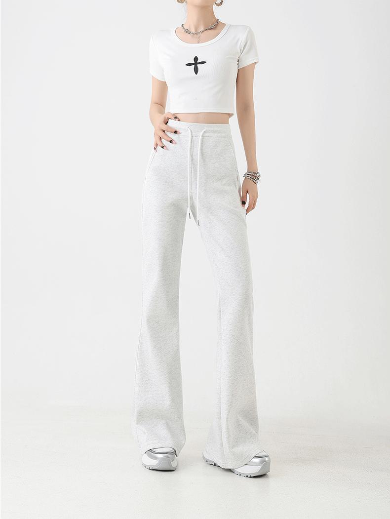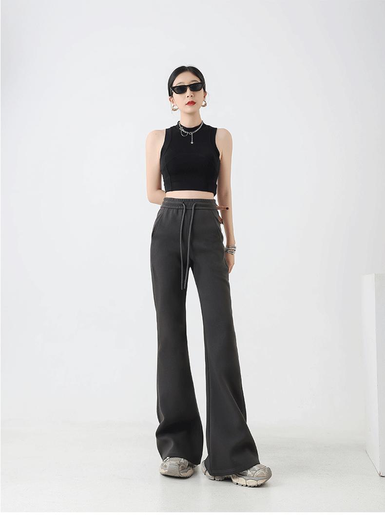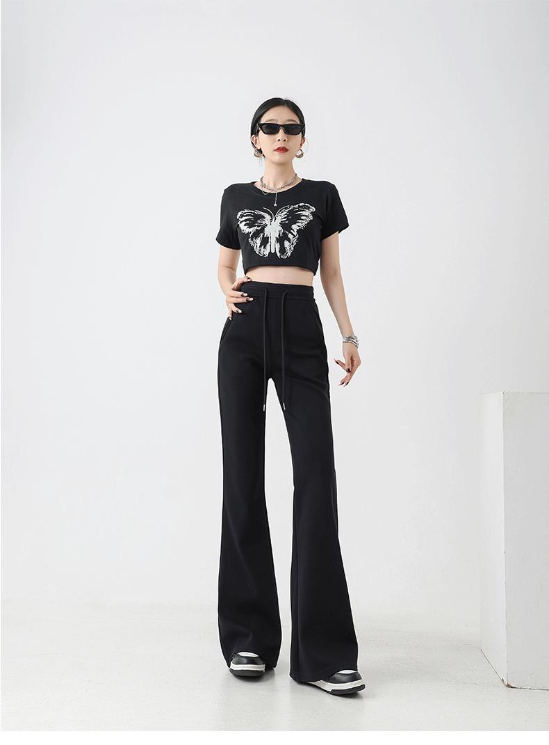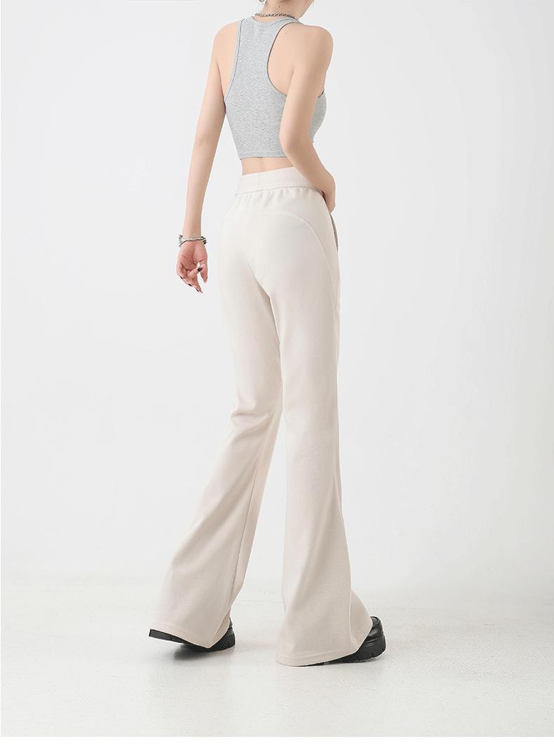 Pantalones de bolsillo genuinos para mujer, nuevos pantalones de otoño con pierna ancha y microacampanados, pantalones deportivos casuales rectos y adelgazantes de cintura alta.