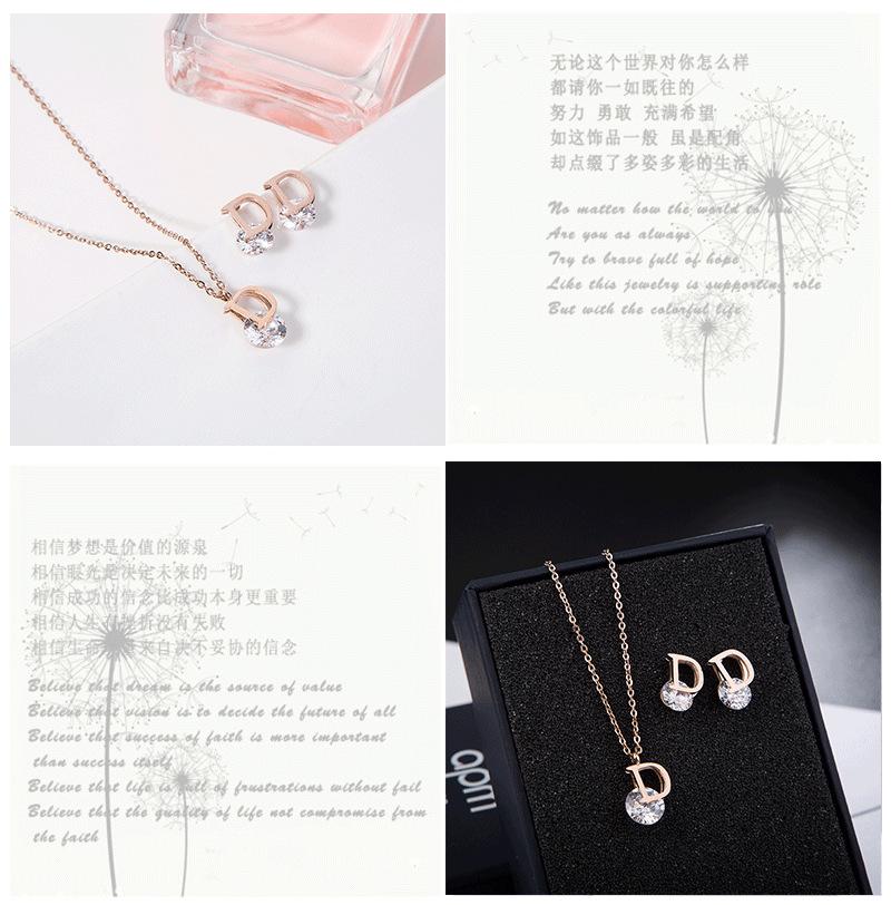 Nuevos pendientes europeos y americanos, collar romano de acero de titanio para mujer, pulsera de moda de oro rosa, conjunto de joyería de una pieza, dropshipping.