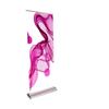 B. Despegue el papel adhesivo de la pieza principal del banner enrollable, alinee y pegue la imagen terminada, alinee los dos extremos y déjelo plano.