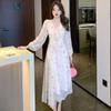 Vestido midi de cuello en V retro ligero y maduro con diseño de rayas negras para mujer, otoño 2023, nueva moda