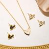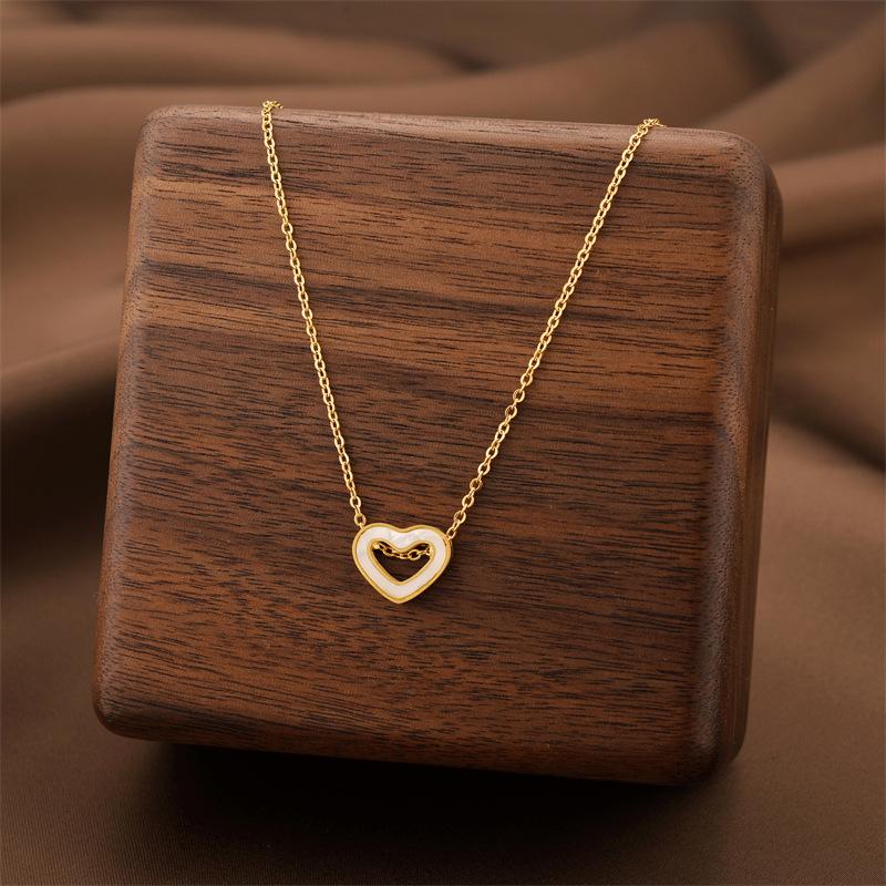Collar de acero de titanio con forma de corazón hueco para mujer, estilo INS, elegante, combinable con todo, chapado en oro de 18 quilates, cadena de clavícula cruzada, venta al por mayor