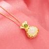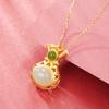 Colgante de bolsa de la suerte de jade hetiano natural con incrustaciones de plata antigua S925, estilo nacional, bolsa de dinero, calabaza, collar de clavícula, venta al por mayor