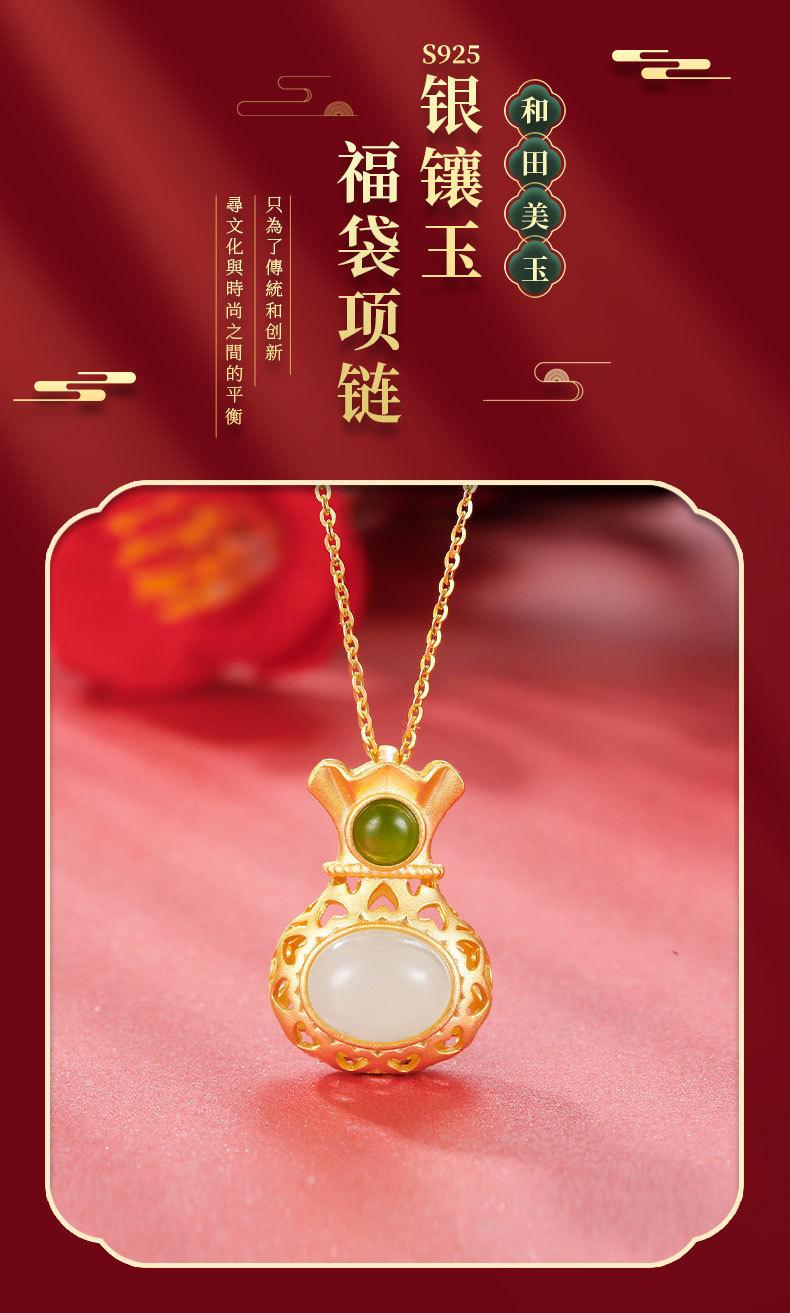 Lucky Bag pendant Pendant + silver gold-plated necklace + national inspection certificate + jewelry gift box