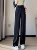 Pantalones negros de pierna ancha y estrecha para mujer, verano 2024, nuevos pantalones casuales de moda de alta gama, rectos, de cintura alta y combinables.