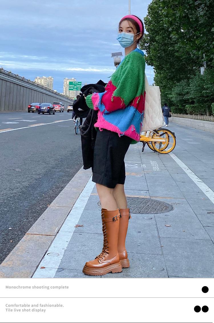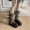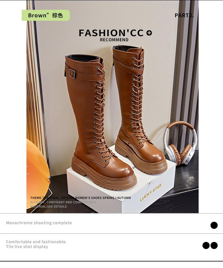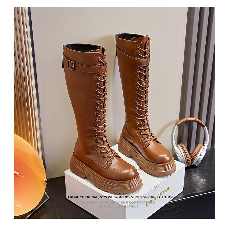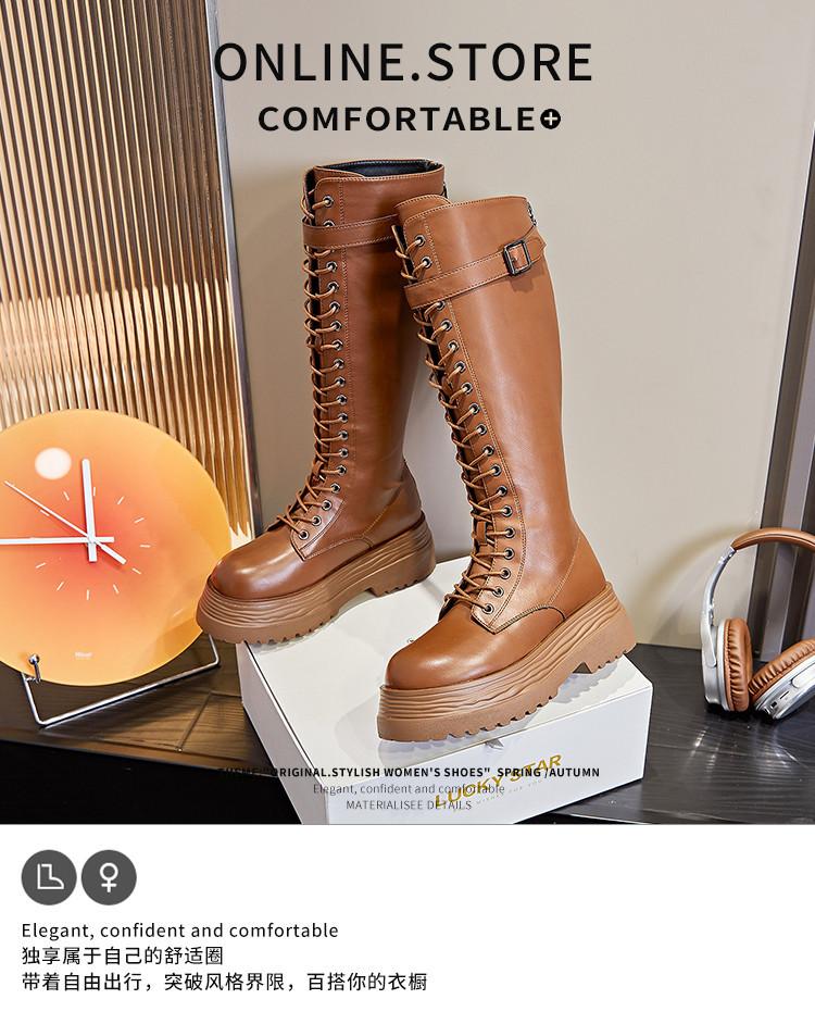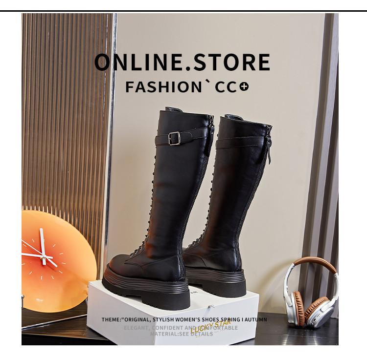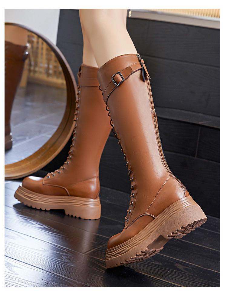 Botas de Caballero Estilo Británico para Mujer 2025 Otoño e Invierno Nuevas Botas Vaqueras de Mujer Botas Casuales Versátiles Botas Altas de Suela Gruesa