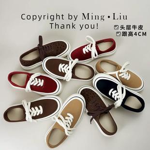 Capa Superior Cuero Vacuno Retro Zapatos Forrest Gump Mujer 2025 Otoño Nuevo Zapatos Blancos Deportivos Casual Zapatos de Tabla Cómodos Zapatos German Trainer