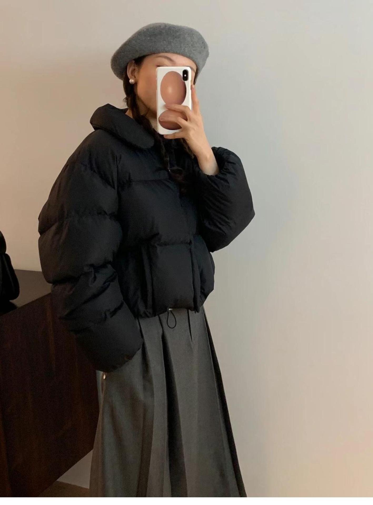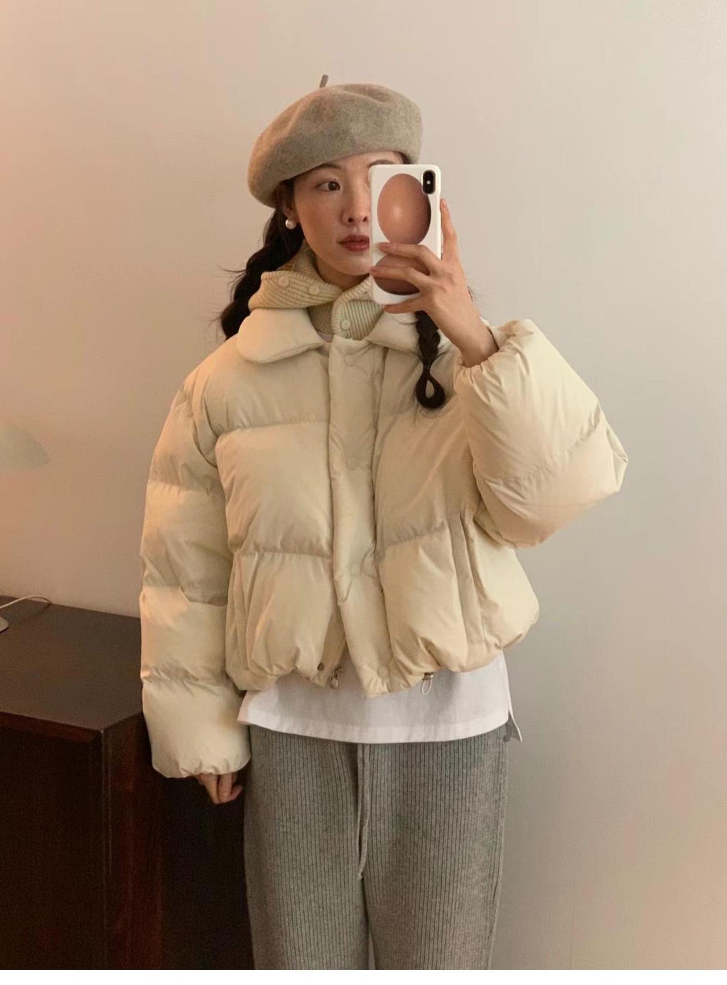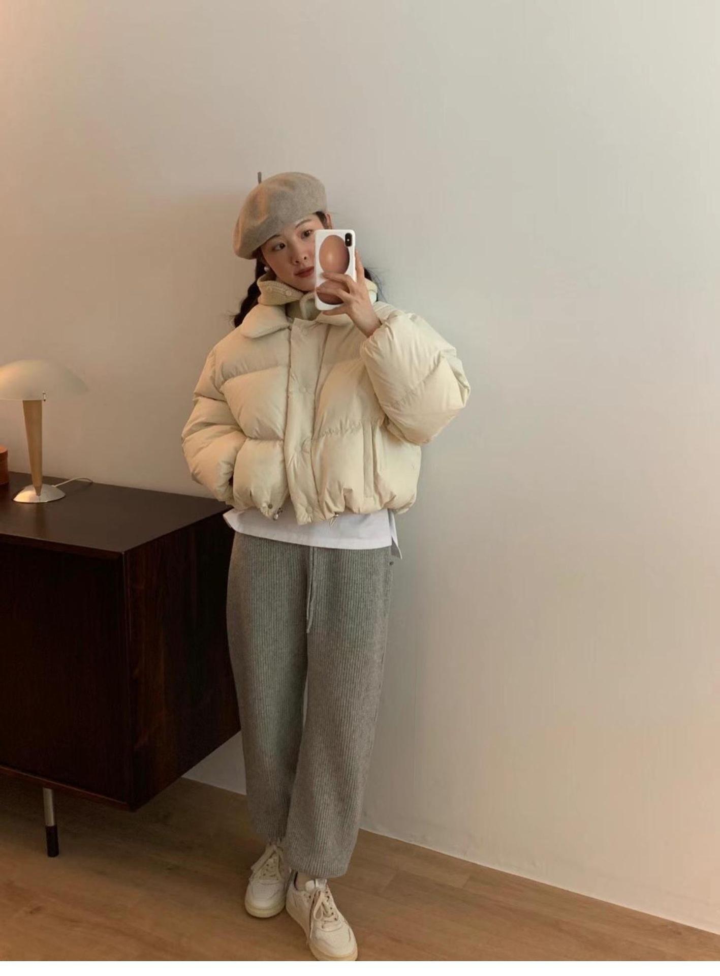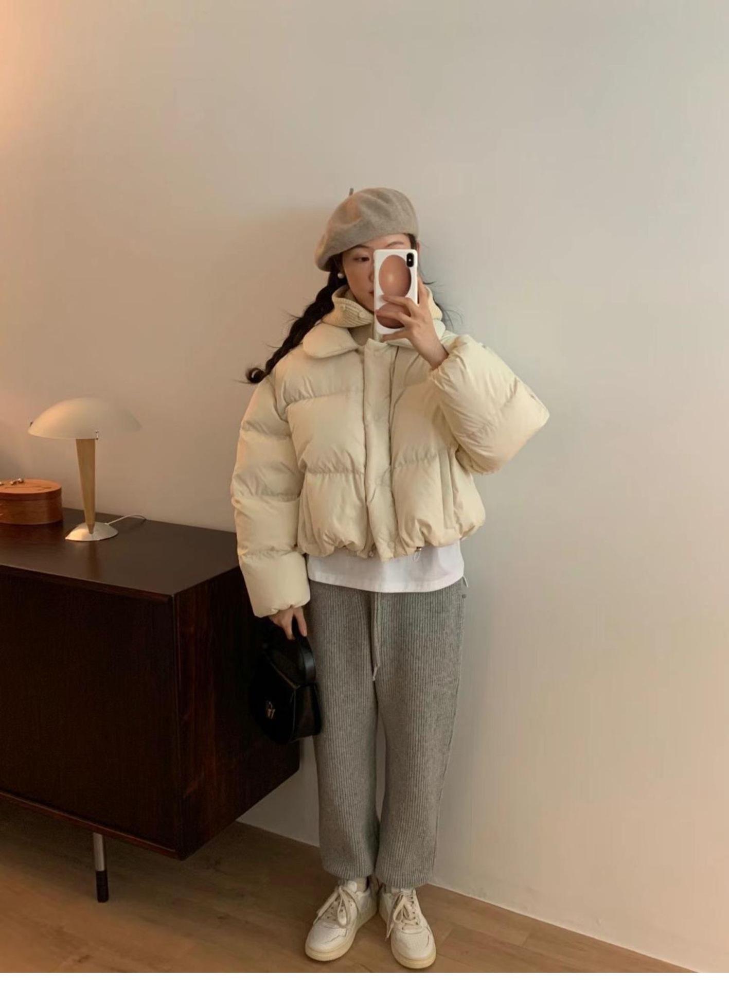 Chaqueta corta de plumón de pato blanco con cuello vuelto para mujer, Nueva moda de invierno 2025, Dulce y cálida chaqueta acolchada para figuras petite