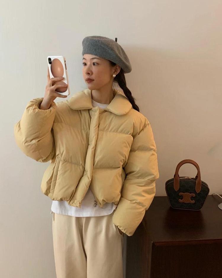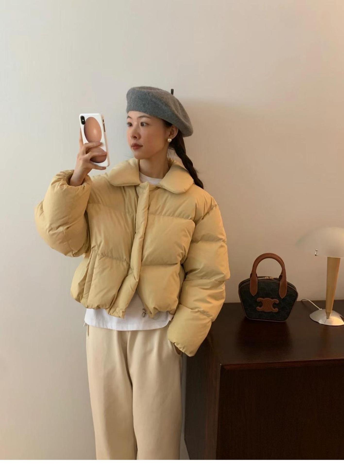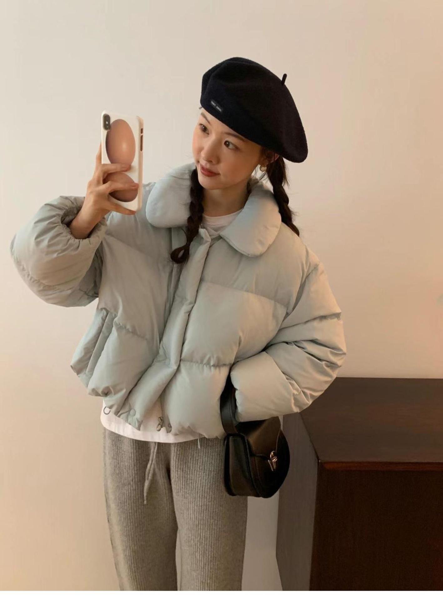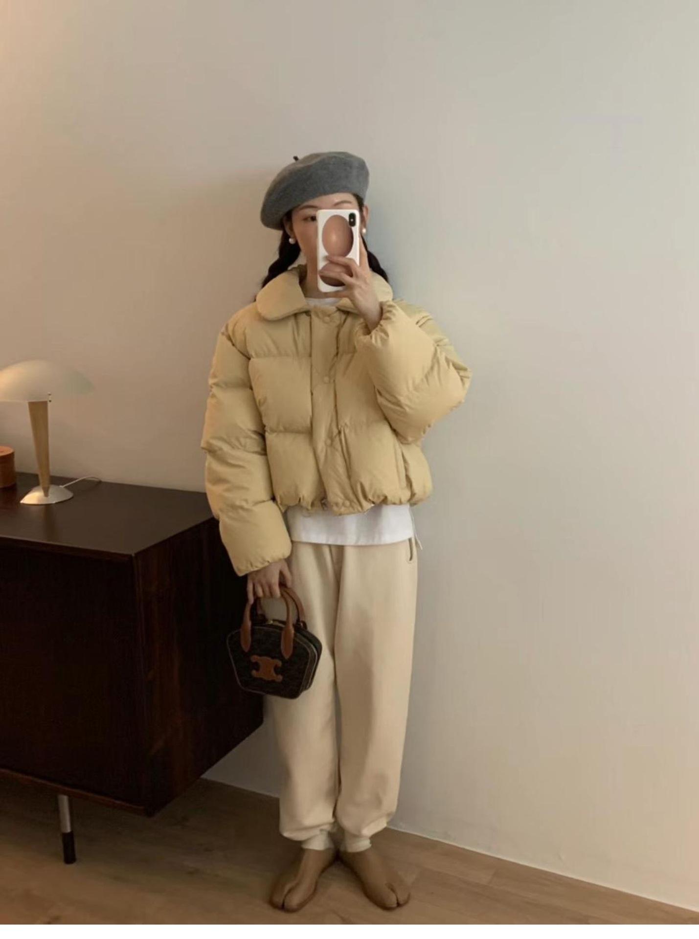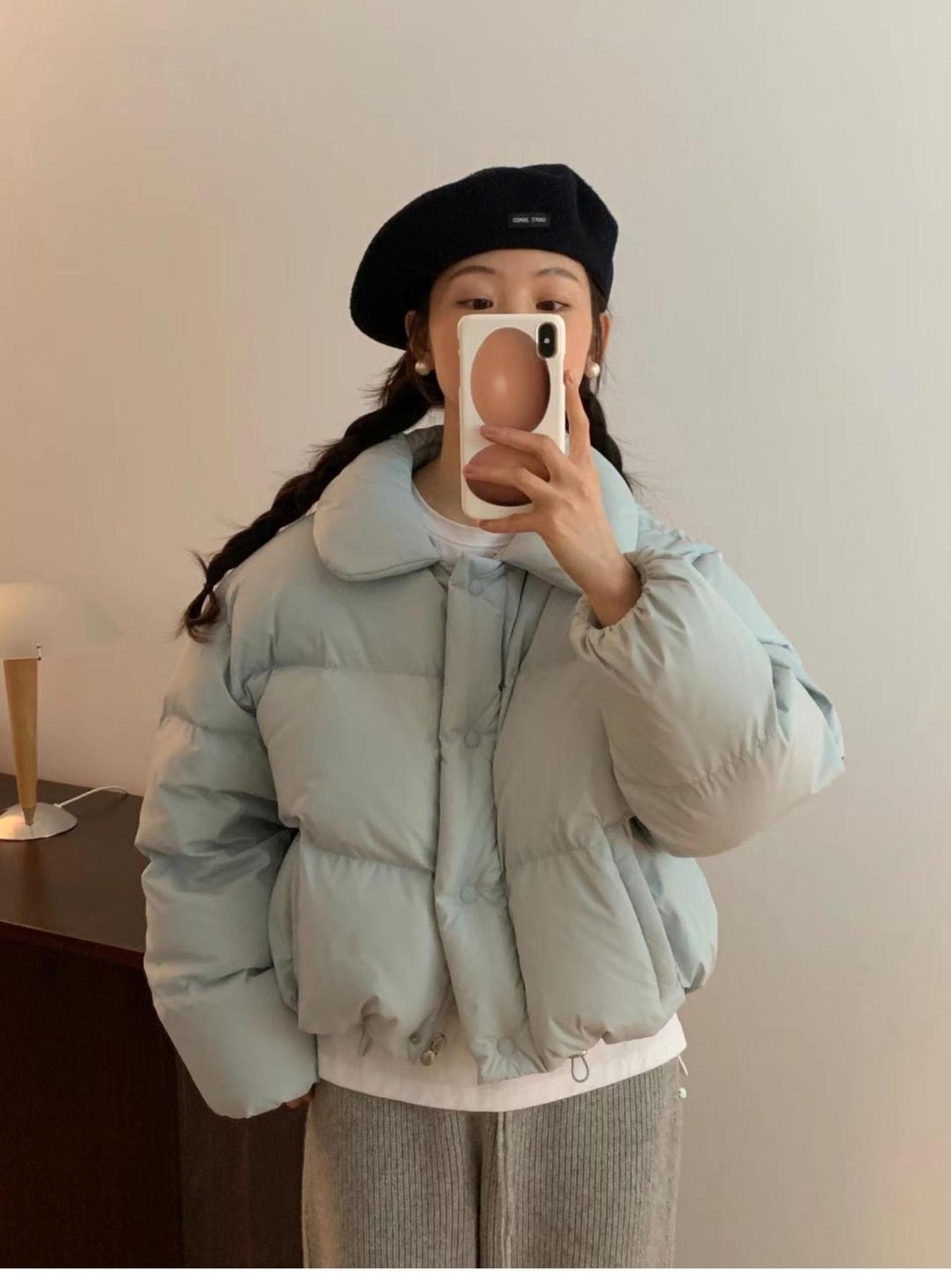 Chaqueta corta de plumón de pato blanco con cuello vuelto para mujer, Nueva moda de invierno 2025, Dulce y cálida chaqueta acolchada para figuras petite