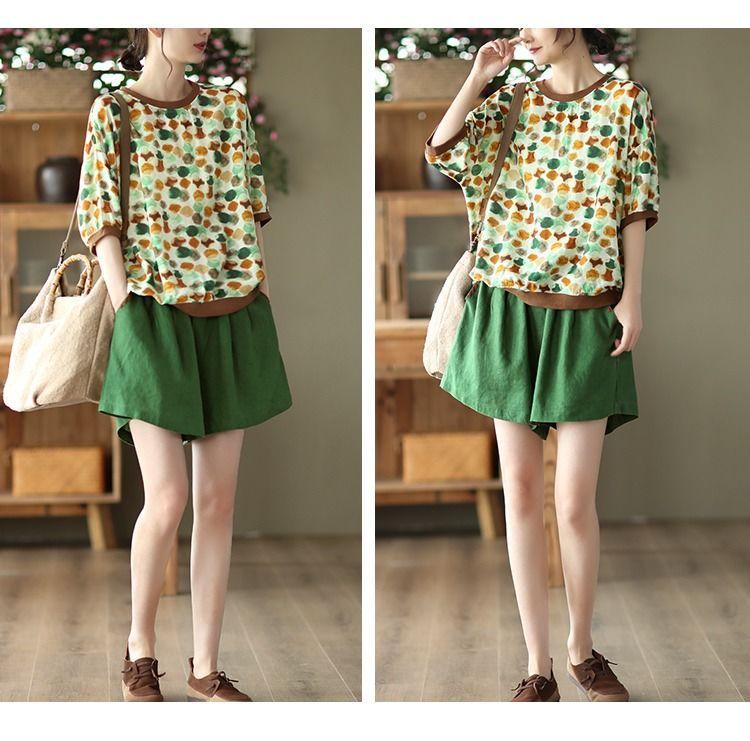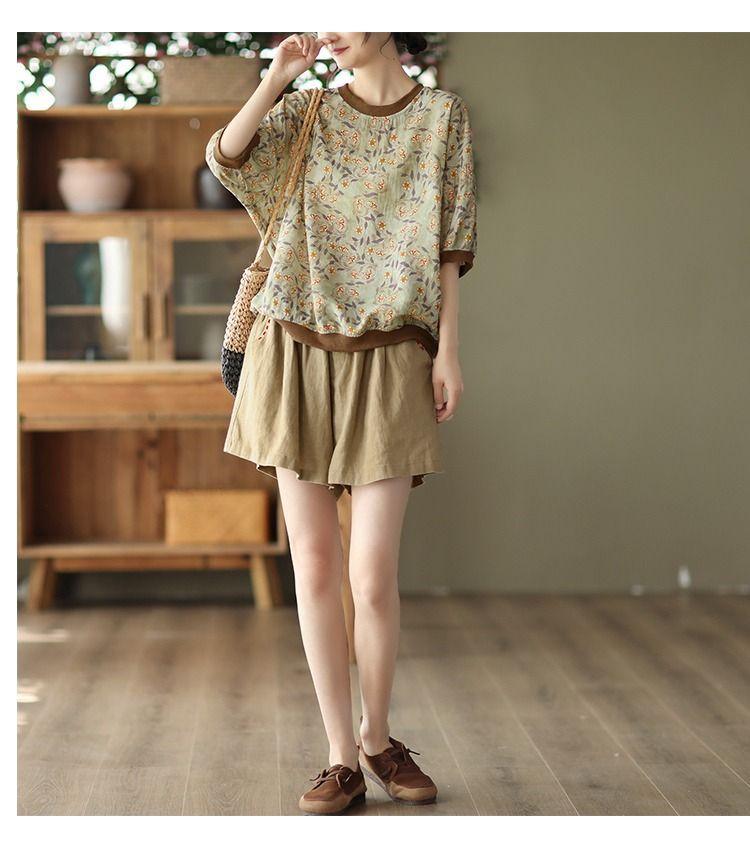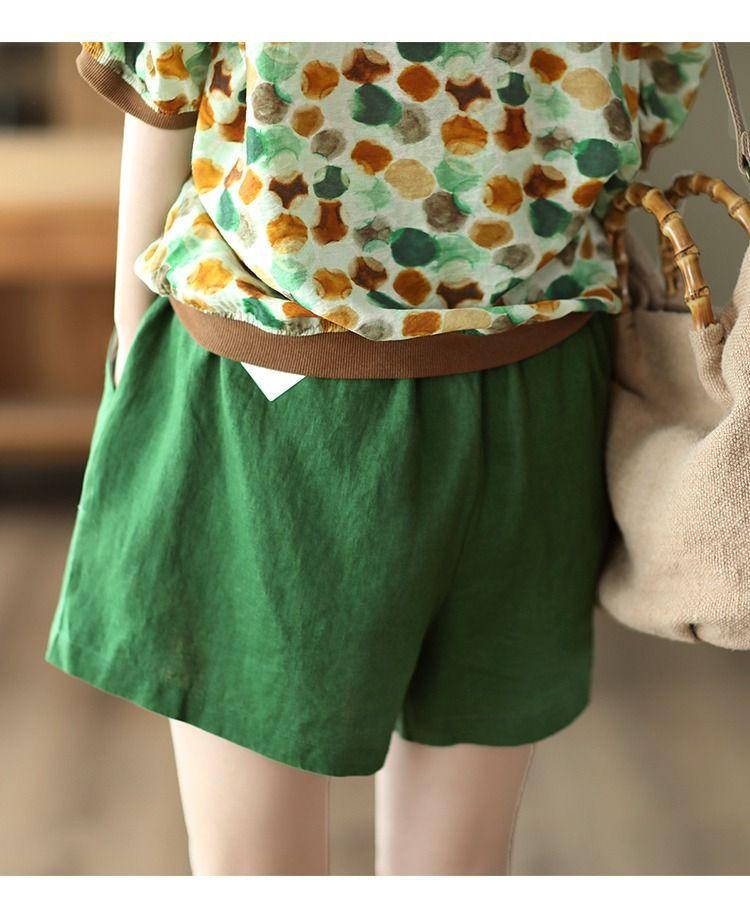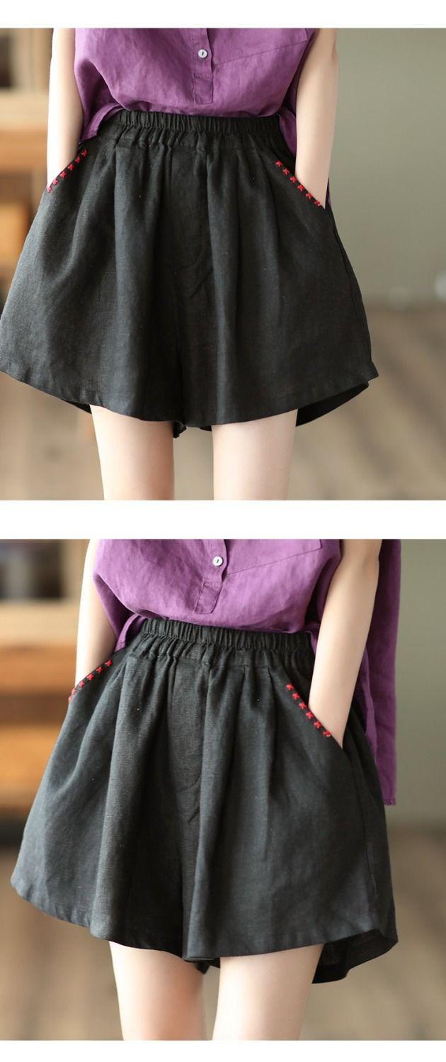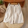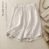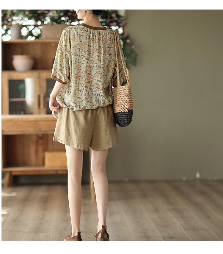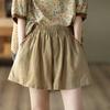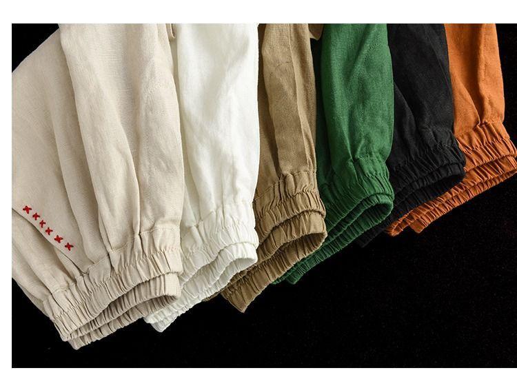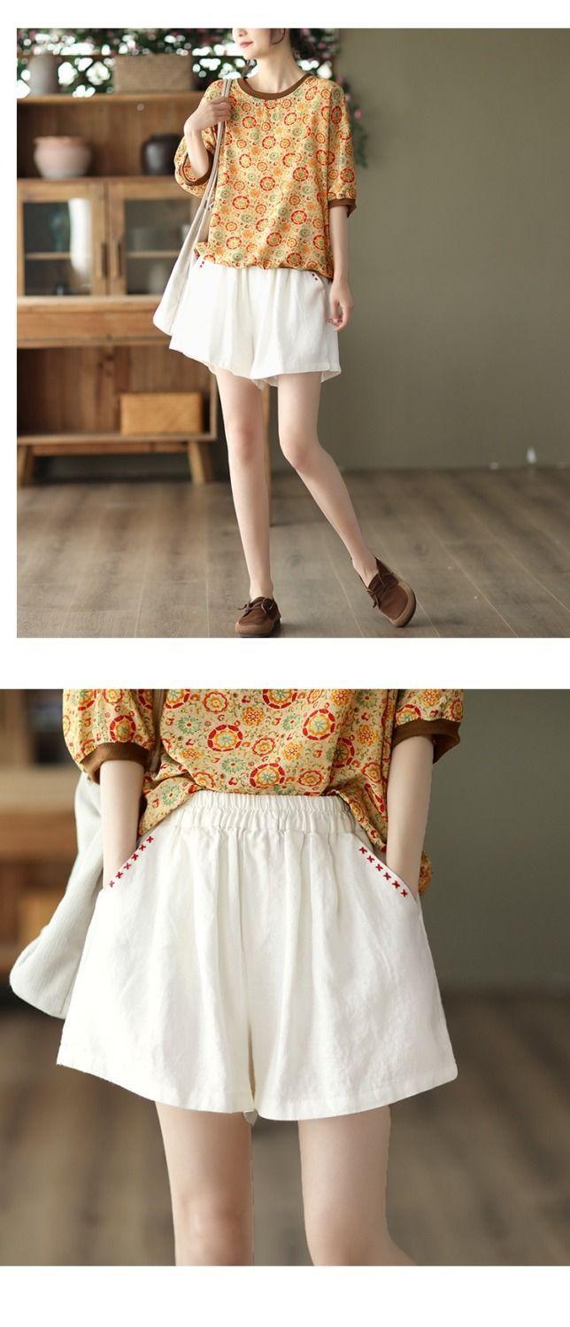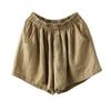 Shorts de Algodón y Lino para Mujer 2024 Verano Artístico Vintage Bordado Color Sólido Combinación Total Estilo Étnico Pantalones de Pierna Ancha
