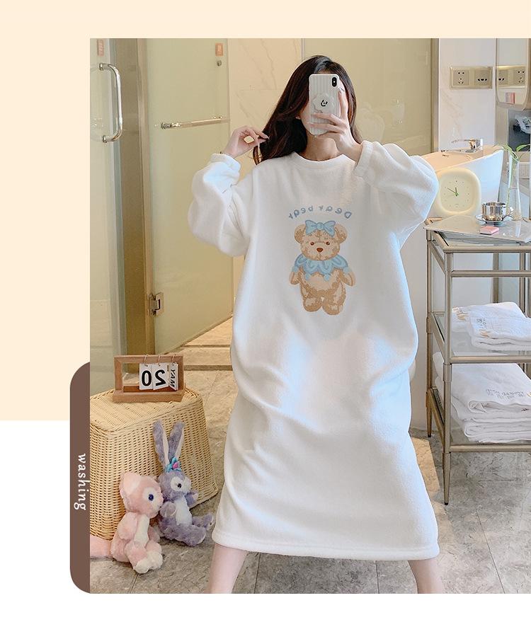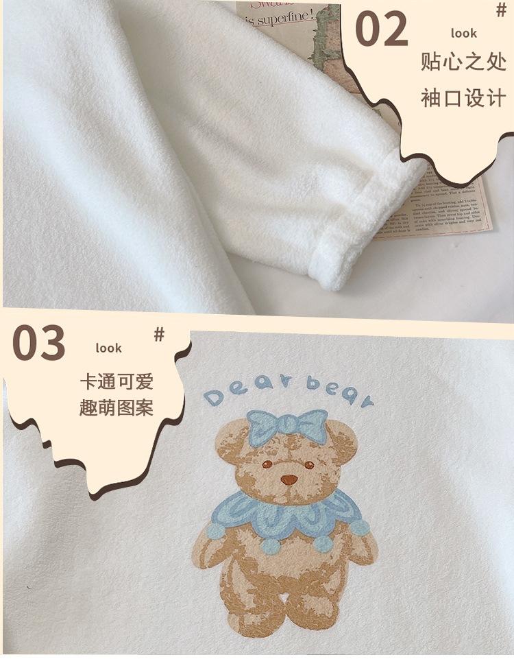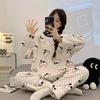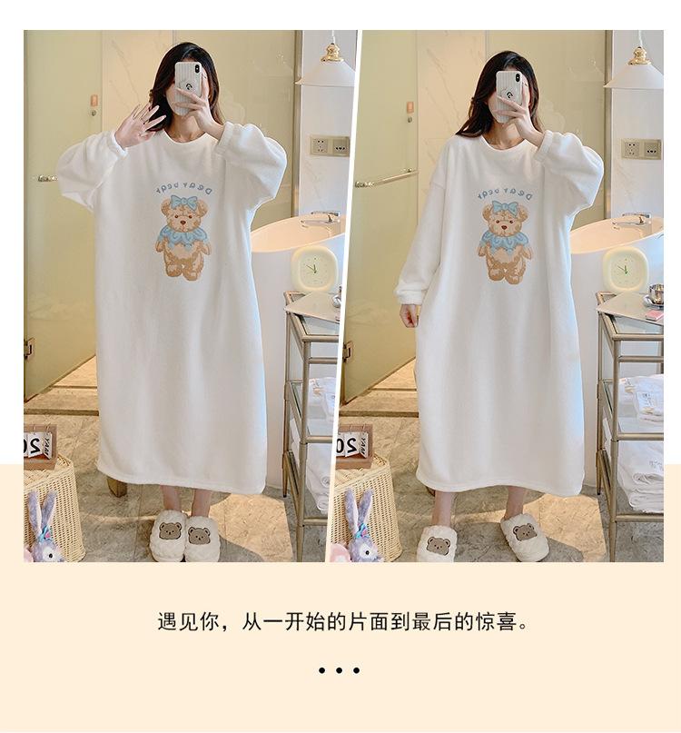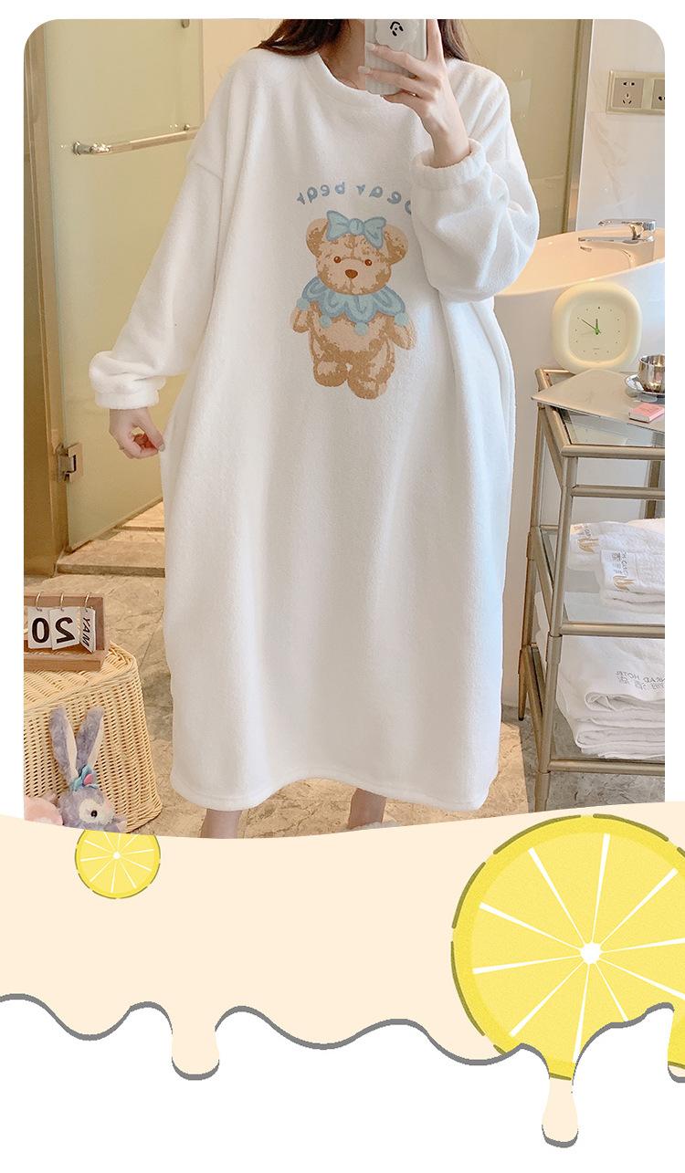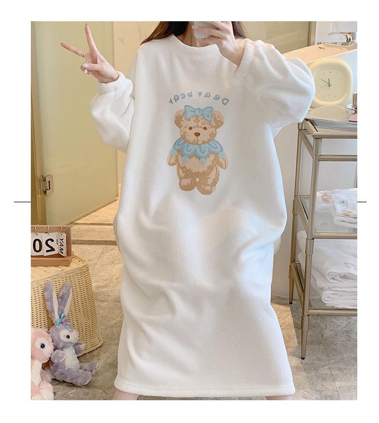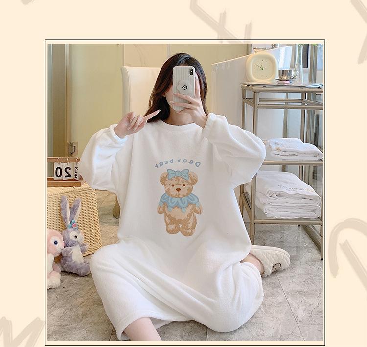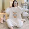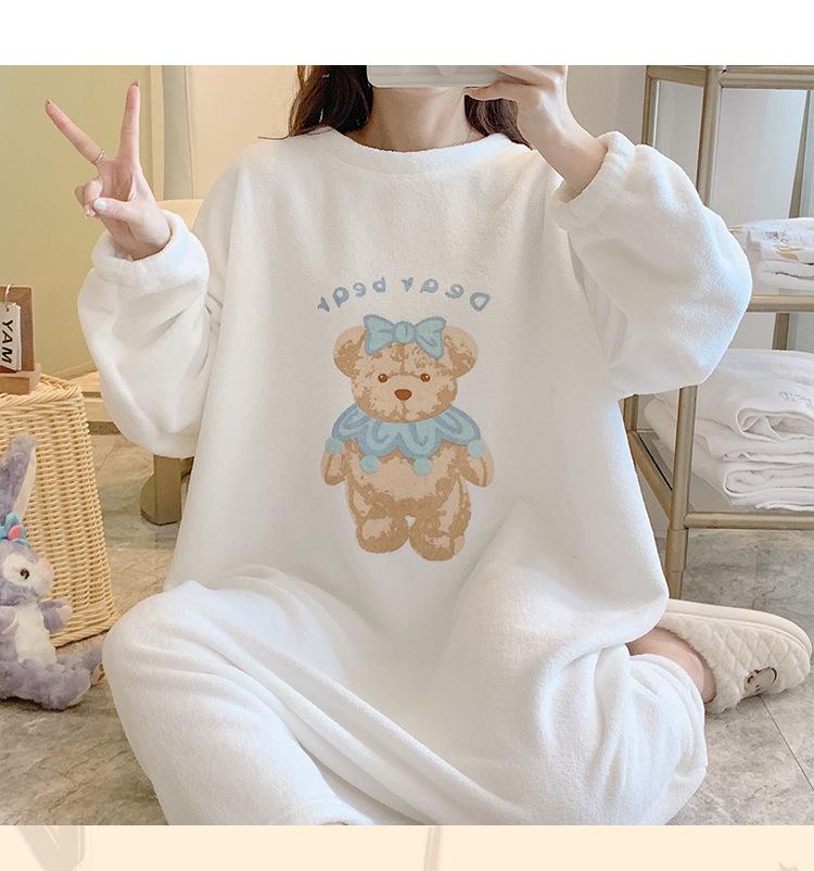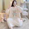 Pijama de otoño e invierno de manga larga de forro polar coral cuello redondo terciopelo acolchado cálido franela dulce lindo caricatura ropa para el hogar