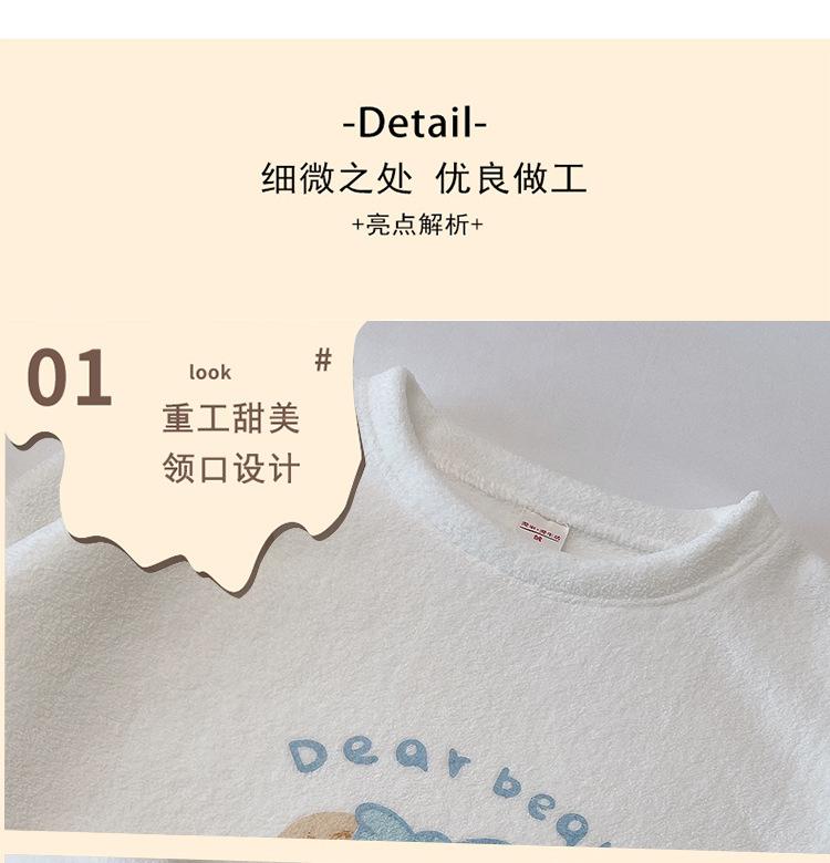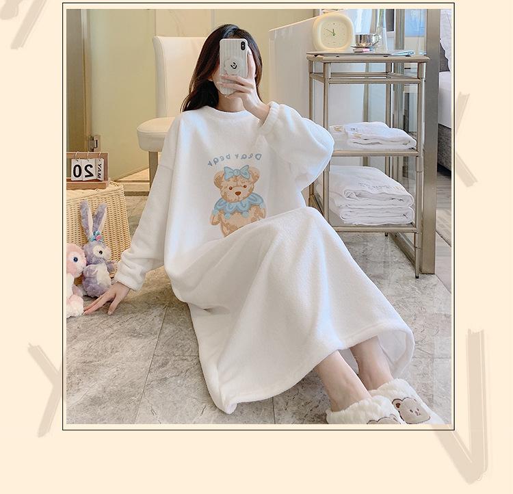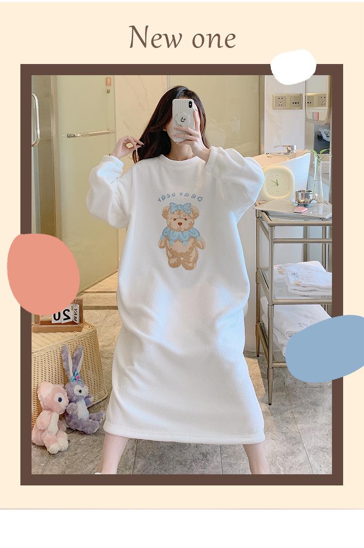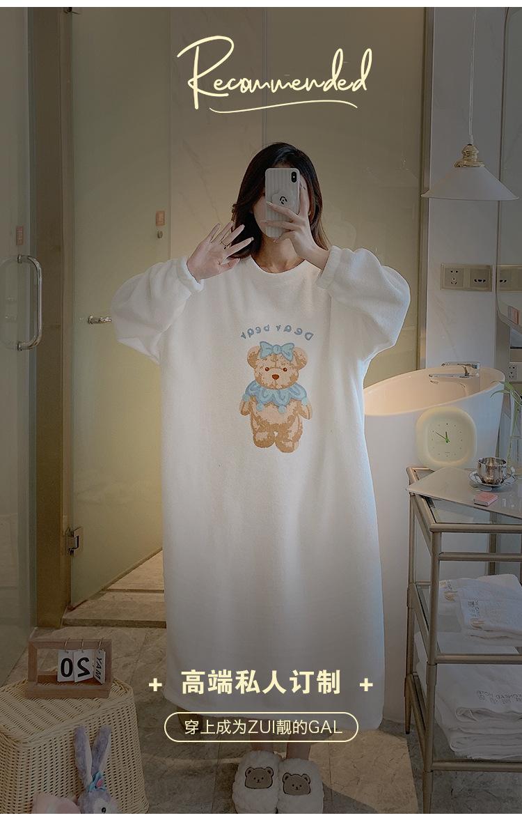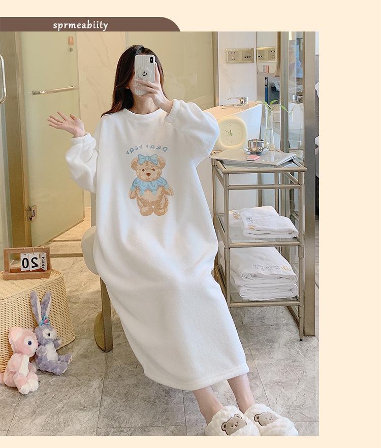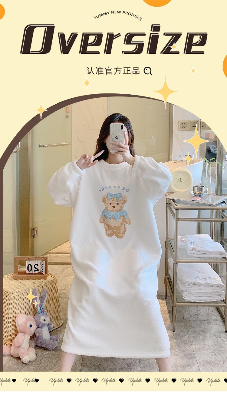 Pijama de otoño e invierno de manga larga de forro polar coral cuello redondo terciopelo acolchado cálido franela dulce lindo caricatura ropa para el hogar