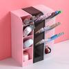 Caja de almacenamiento con inserción oblicua, soporte para bolígrafos de escritorio para estudiantes, caja de almacenamiento con cajón de papelería multifuncional creativa