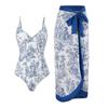 Traje de baño de estilo europeo y americano 2024 para mujer, ajustado, retro, resistente al sol, vestido largo de playa, traje de baño de dos piezas para aguas termales