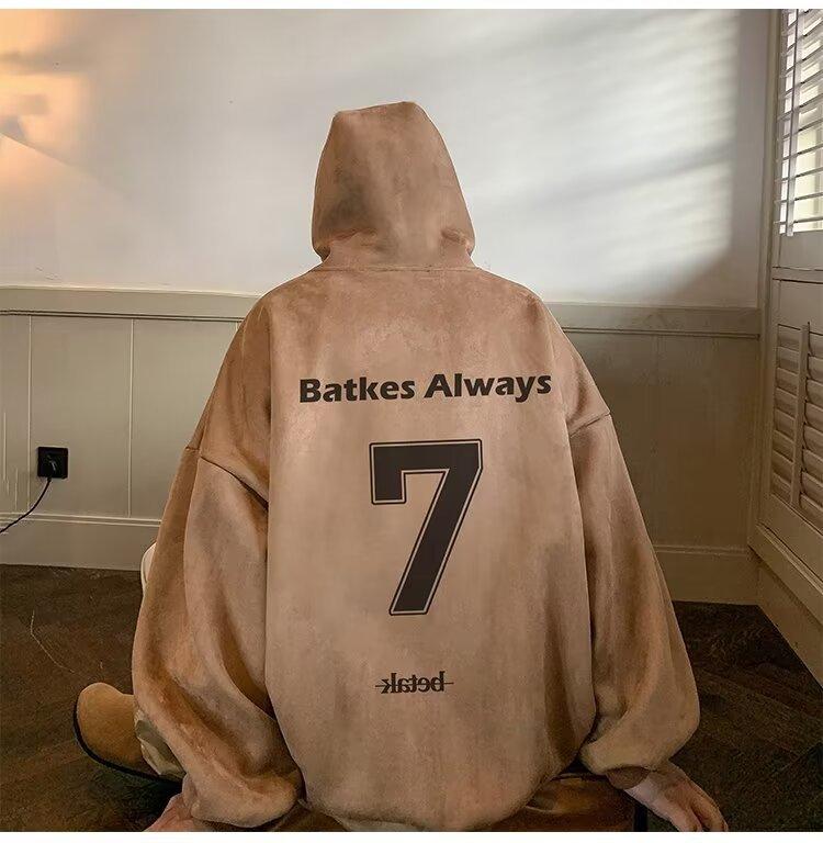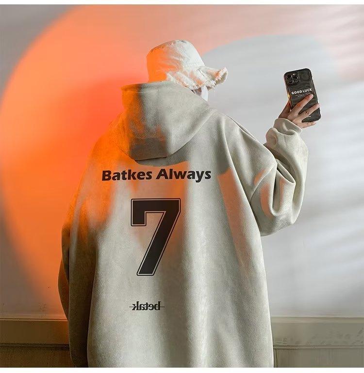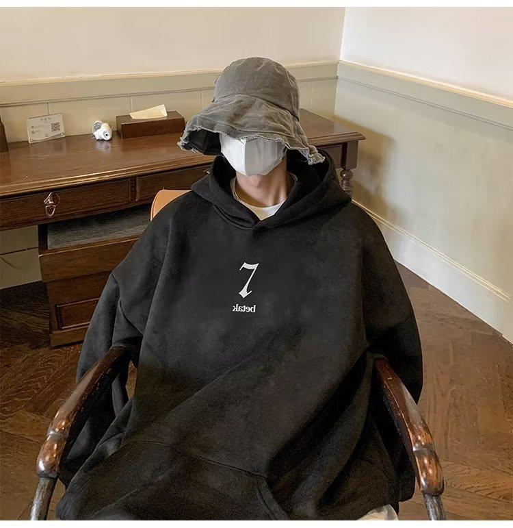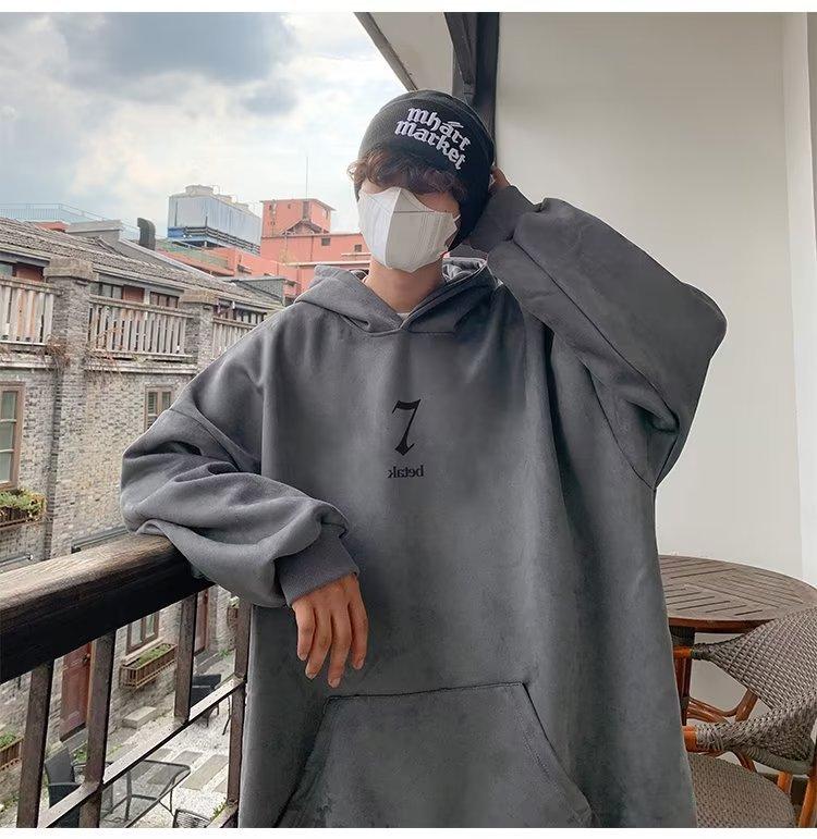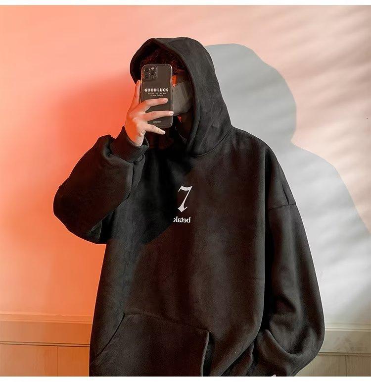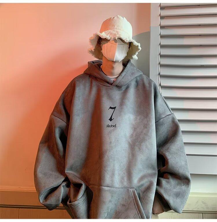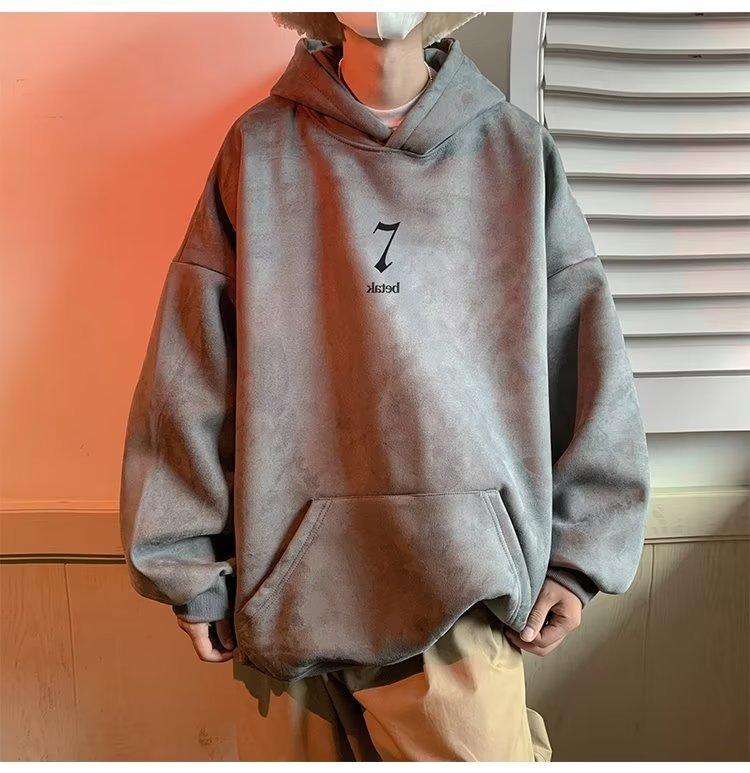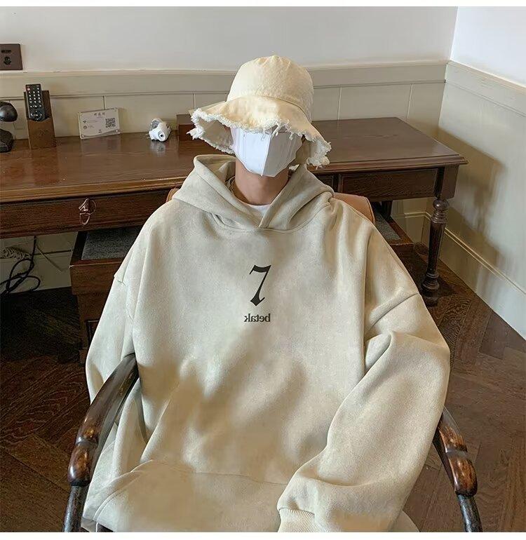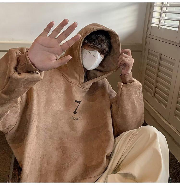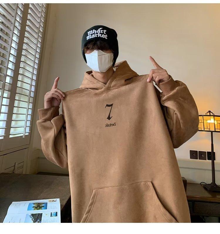 Suéter con capucha de gamuza para hombre, otoño e invierno, nuevo, con forro polar, marca de moda, retro, suelto, de talla grande, top a juego.