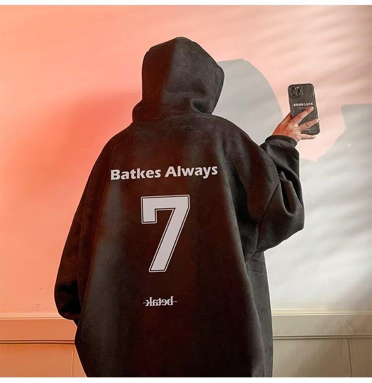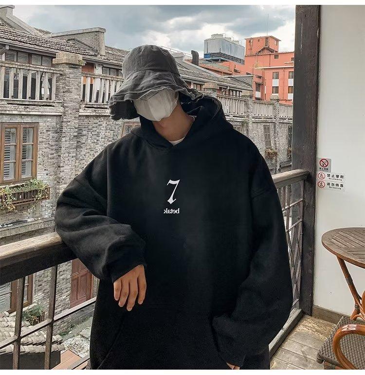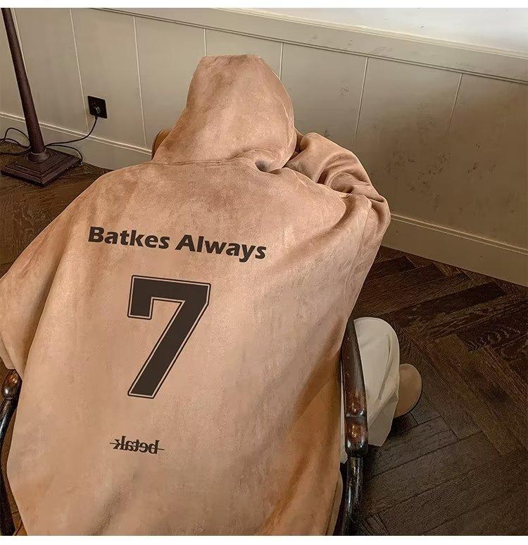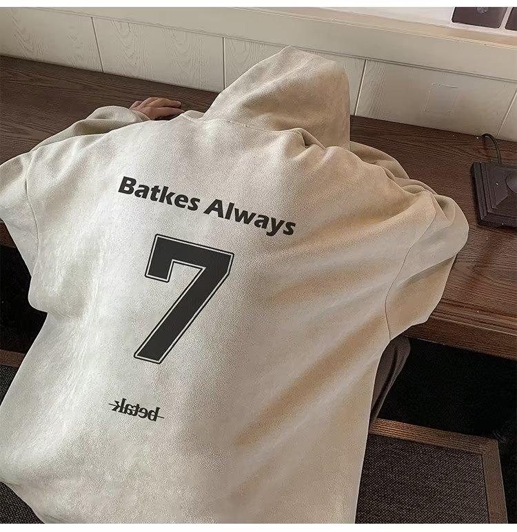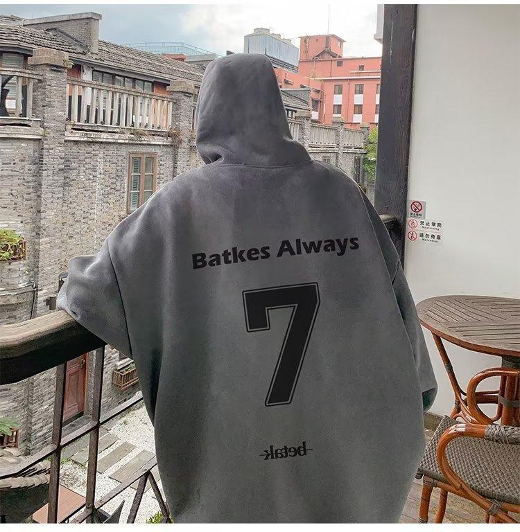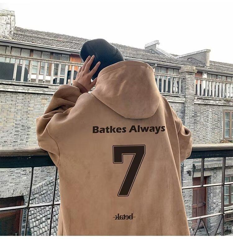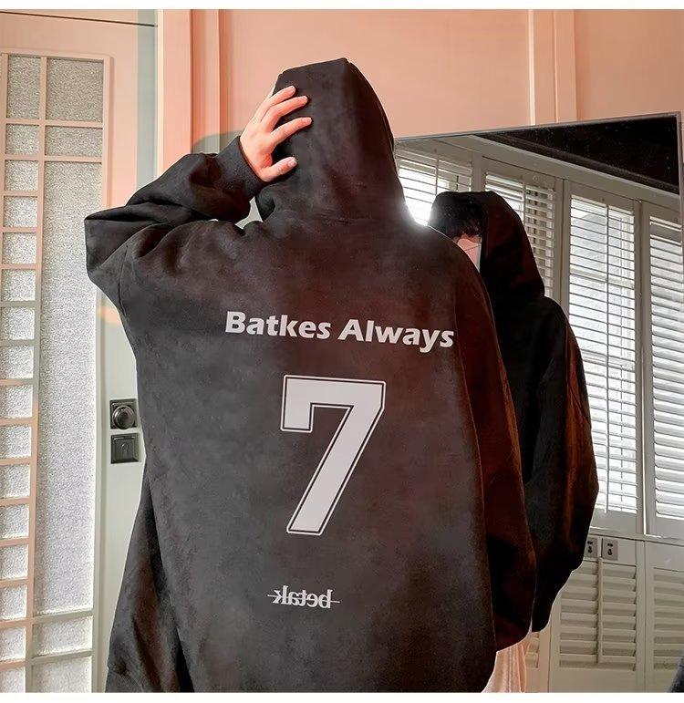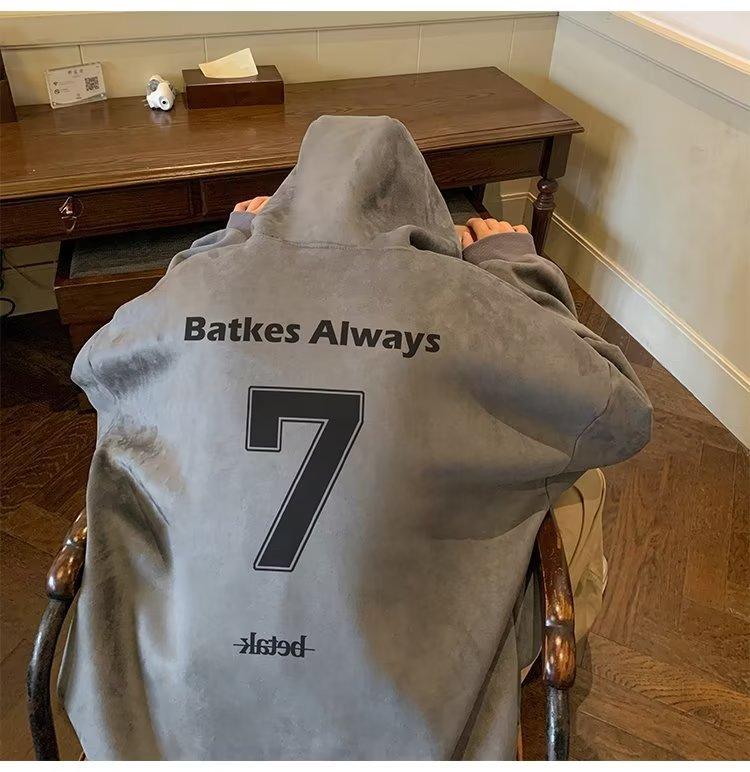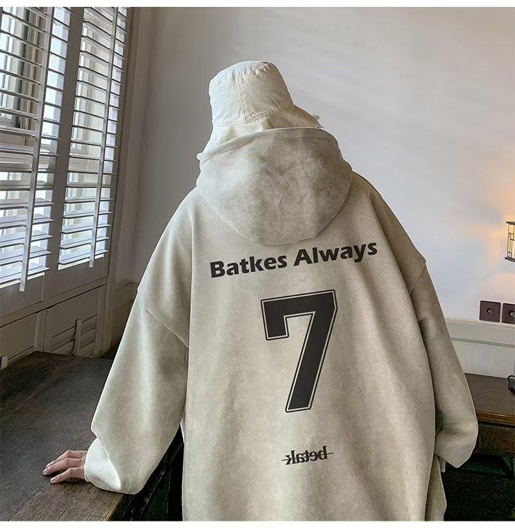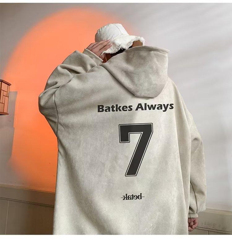 Suéter con capucha de gamuza para hombre, otoño e invierno, nuevo, con forro polar, marca de moda, retro, suelto, de talla grande, top a juego.