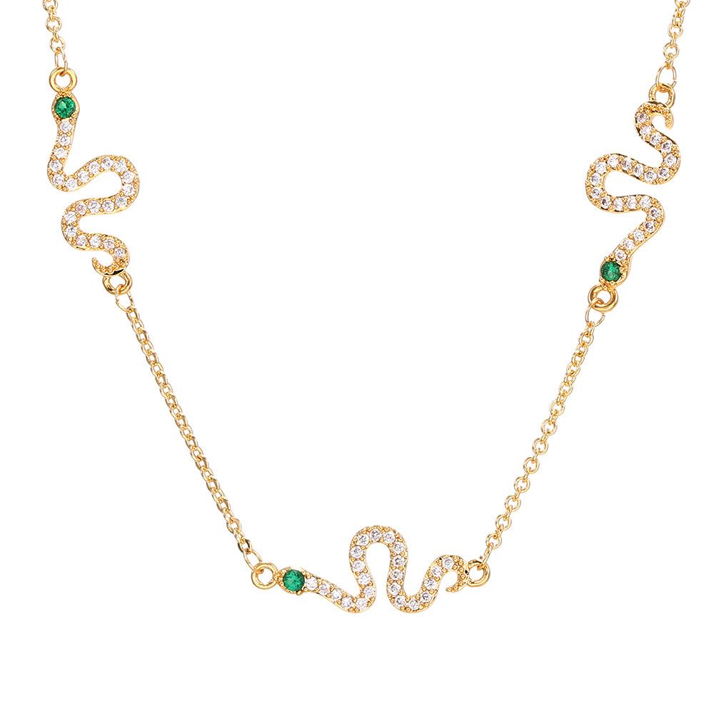 Collar de serpiente pequeño estilo europeo y americano, estilo retro, con diseño de moda, cadena de clavícula con microincrustaciones de circonitas, chapado en oro real.